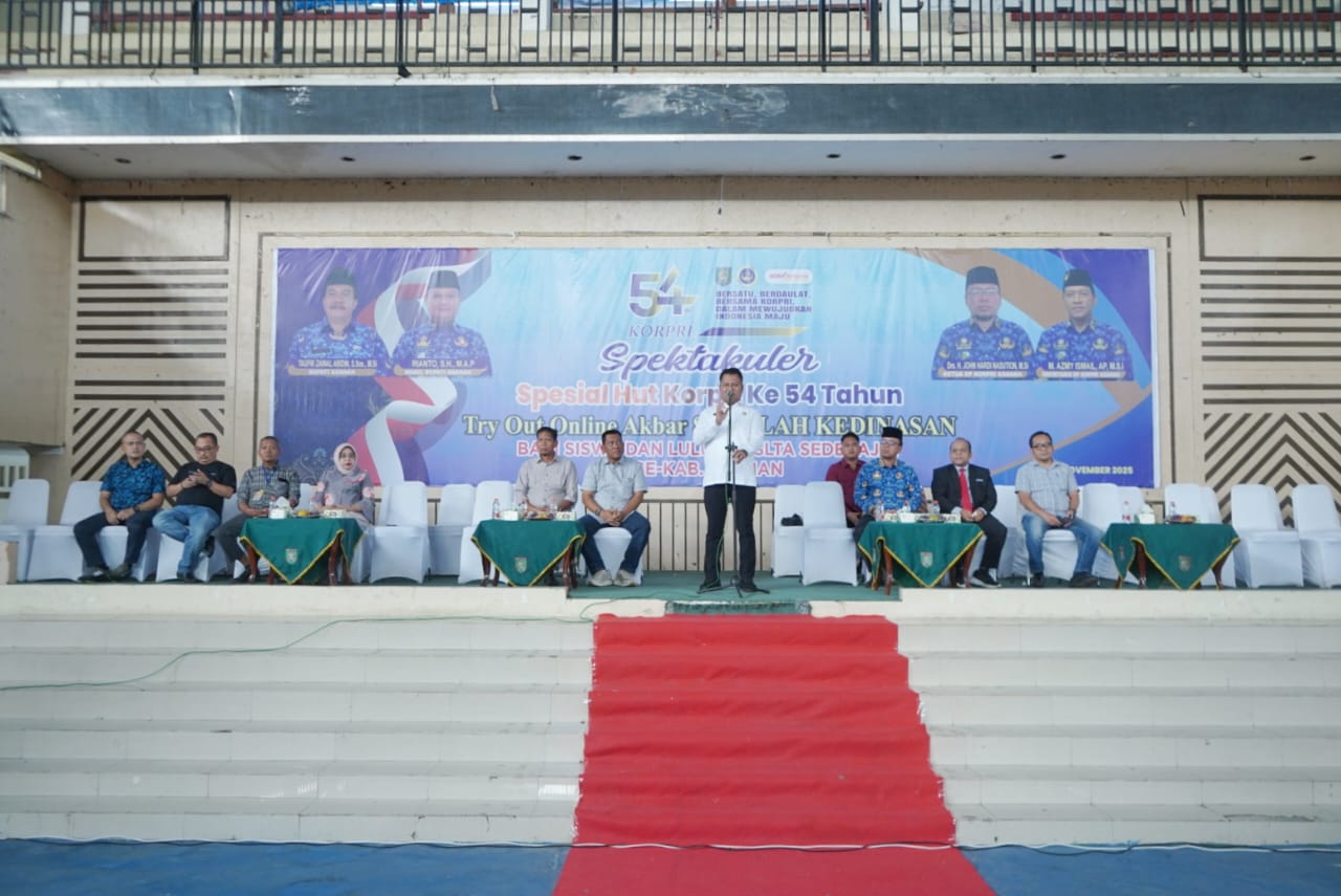 IKNews, ASAHAN – Dalam rangka HUT Korpri ke-54, Dewan Pengurus Korpri (DPK) Kabupaten Asahan menggelar Try Out Online Akbar Sekolah Kedinasan, Sabtu (29/11/2025). Kegiatan di Gedung Serbaguna Kisaran ini diikuti ratusan siswa kelas X, XI, XII, dan lulusan SLTA se-Kabupaten Asahan.