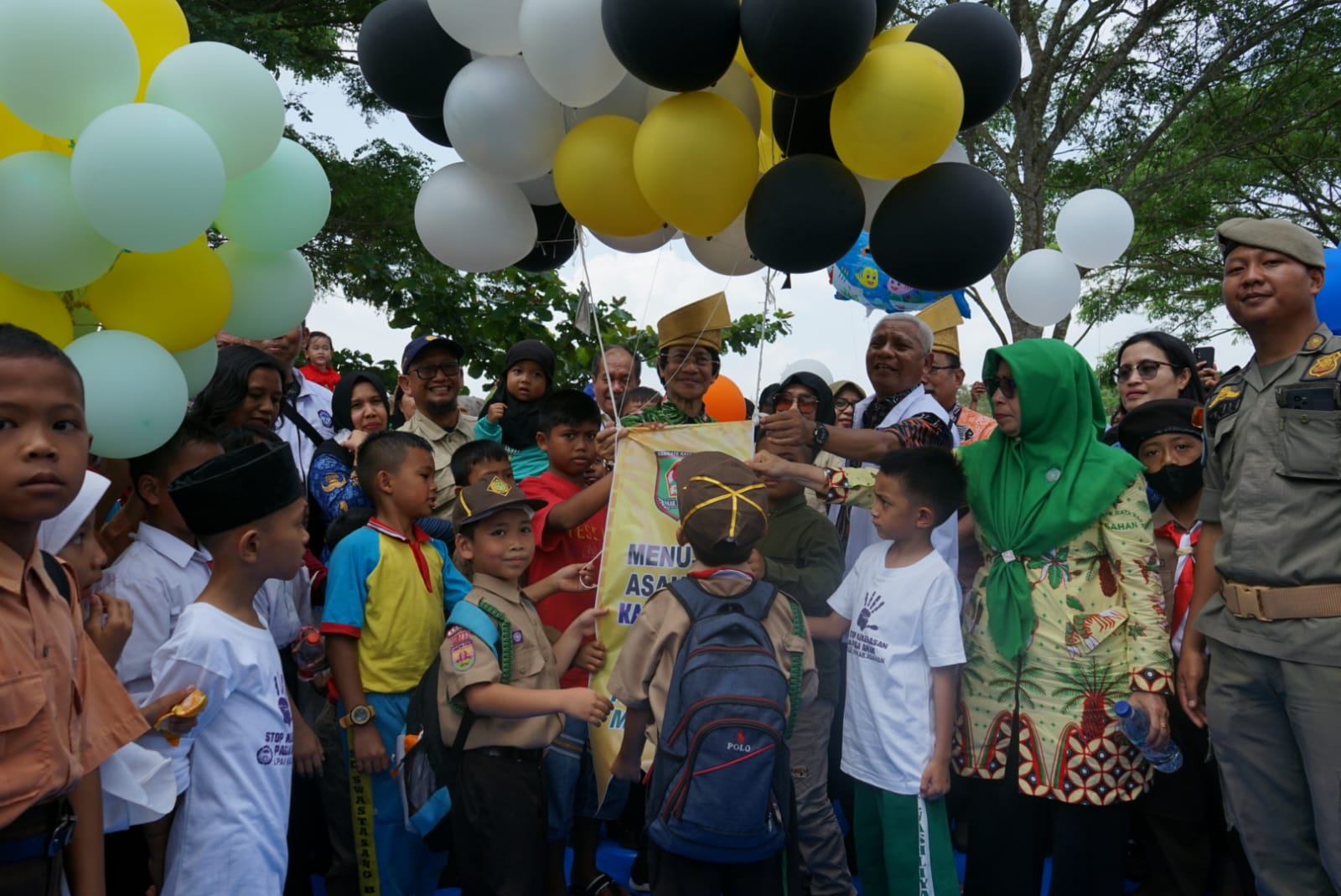 Para anak bermain bersama Bupati dan Wakil Bupati Asahan, serta Ketua Lembaga Perlindungan Anak Indonesia (LPAI) Prof Dr. H. Seto Mulyadi atau yang lebih akrab dengan sebutan Kak Seto di lokasi Pameran Hari Jadi ke- 77 Kabupaten Asahan.