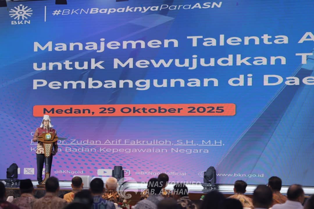 IKNews, ASAHAN – Pemerintah Kabupaten Asahan menegaskan dukungan terhadap penerapan manajemen talenta ASN berbasis meritokrasi. Rabu (29/10/2025), Bupati Asahan Taufik Zainal Abidin hadir dalam kegiatan Penguatan Penerapan Manajemen Talenta ASN di Aula Raja Inal Siregar, Kantor Gubernur Sumatera Utara.