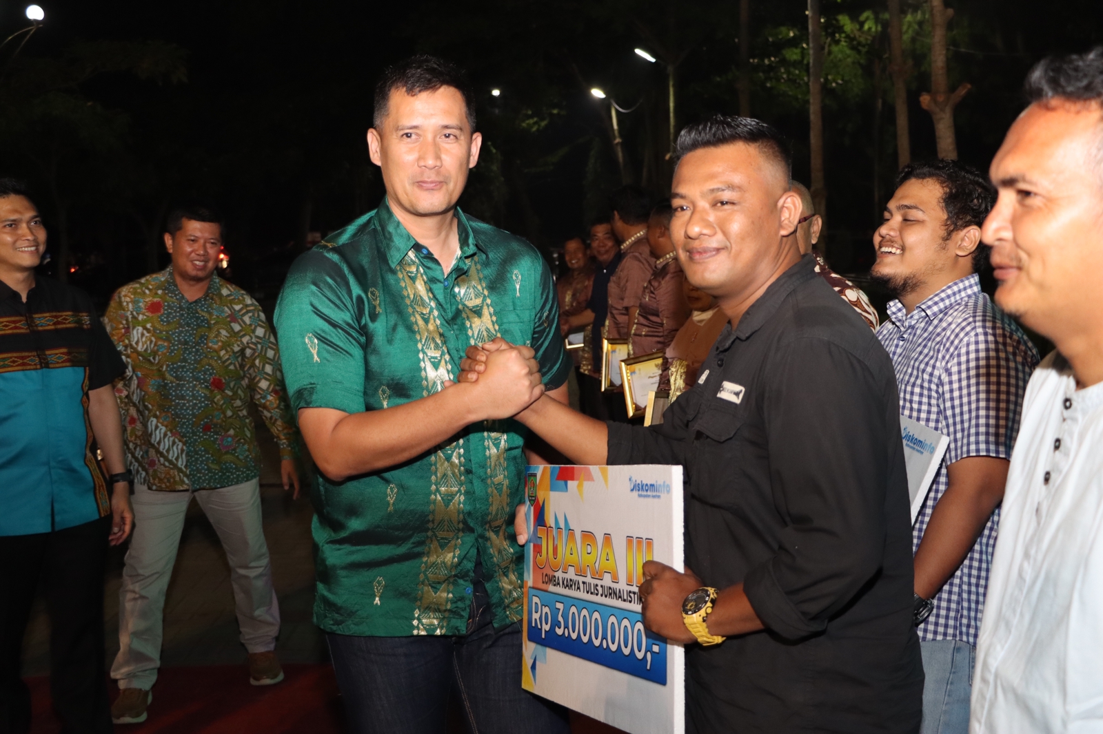 IKnews, ASAHAN – Penutupan pameran Hari Jadi ke-77 Kabupaten Asahan diwarnai dengan pemberian hadiah kepada pemenang lomba karya Jurnalistik Juara I Isamnto Panjaitan oleh Bupati Asahan, H. Surya.