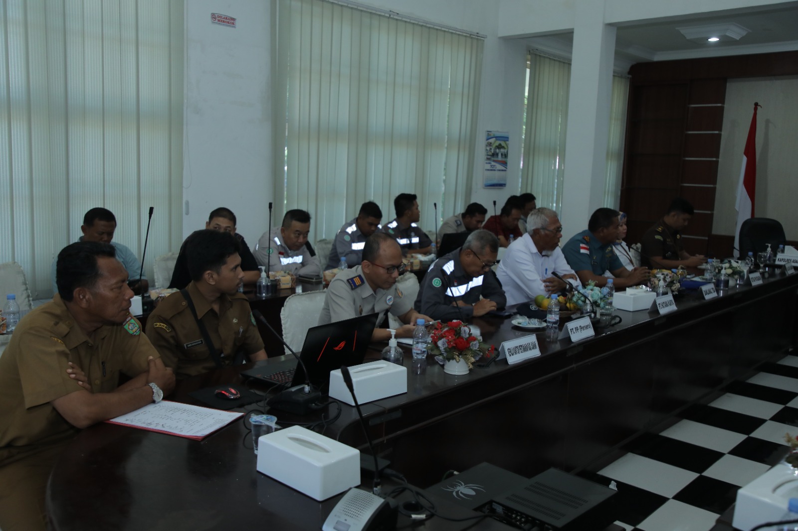Rapat tersebut dilaksanakan di Aula Mawar Kantor Bupati Asahan dihadiri mewakili Dandim 0208/Asahan, mewakili Danlanal TBA, mewakili Kajari Asahan, mewakili Danlanal TBA, mewakili Kapolres Asahan, mewakili Ketua PN Kisaran, Sekretaris Daerah Kabupaten Asahan, OPD, PT. PP, PT. Hutama Karya dan tamu undangan lainnya.