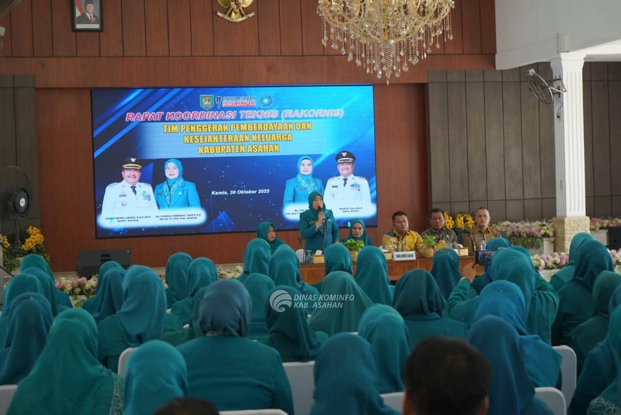 IKNews, ASAHAN – Suasana serius tapi hangat mewarnai Rapat Koordinasi Teknis (Rakornis) TP PKK Kabupaten Asahan di Aula Kantor Bupati, Kamis (30/10/2025). Kegiatan ini menjadi momentum penyelarasan program kerja TP PKK dengan visi Pemerintah Kabupaten Asahan: “Sejahtera, Religius, Maju, dan Berkelanjutan.”