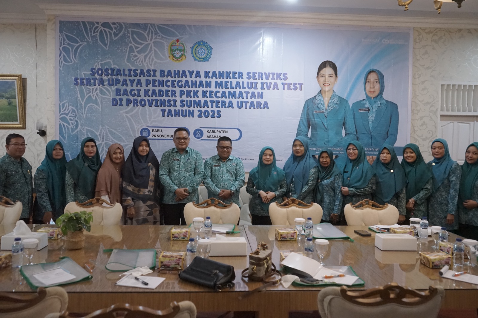 IKNews, ASAHAN — Tim Penggerak PKK Provinsi Sumatera Utara menyelenggarakan sosialisasi IVA Test bagi kader PKK Kecamatan se-Sumatera Utara di Rumah Dinas Bupati Asahan, Rabu (26/11/2025). Kegiatan ini bertujuan meningkatkan deteksi dini kanker serviks melalui edukasi dan pelatihan bagi kader PKK.