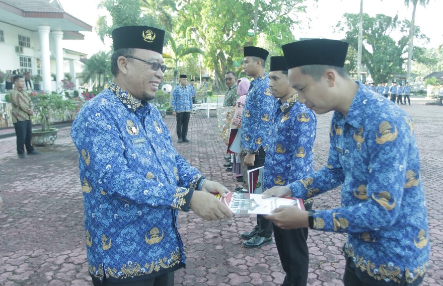 SK PNS diserahkan Sekda Asahan pada saat Upacara Hari Kesadaran Nasional di Halaman Kantor Bupati Asahan yang diikuti Para Asisten, Staf Ahli Bupati Asahan, OPD dan ASN di Lingkungan Pemerintah Kabupaten Asahan, Sabtu (18/2/2023).