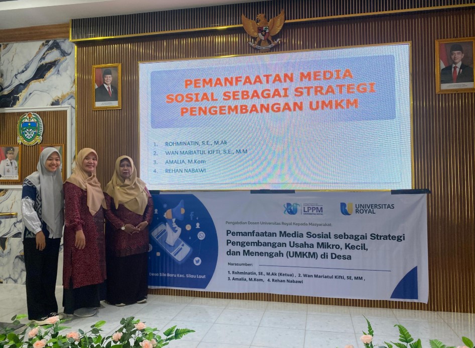 IKNews, ASAHAN – Media sosial kini menjadi salah satu pilar penting dalam pengembangan usaha mikro, kecil, dan menengah (UMKM). Menjawab tantangan ini, Universitas Royal menggelar workshop pelatihan pemanfaatan media sosial bagi pelaku UMKM di Desa Silau Baru, Kecamatan Silau Laut, Kabupaten Asahan, pada 27–28 Mei 2025.