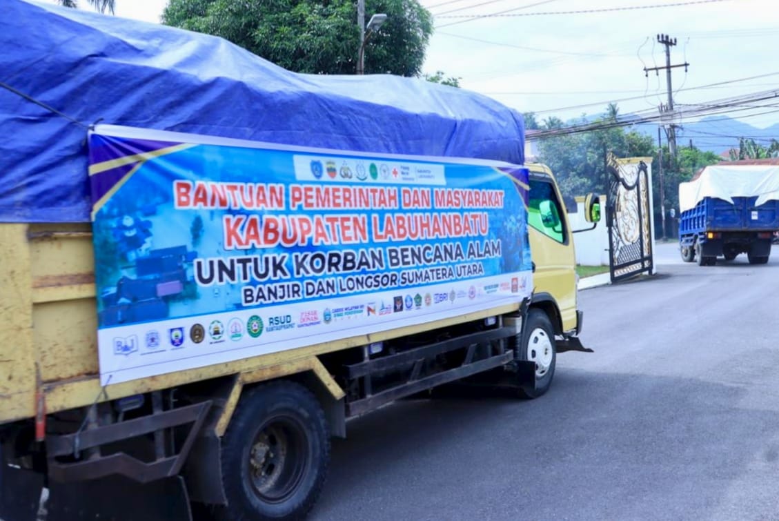 IKNews, LABUHANBATU – 10 Desember 2025 Suasana haru menyelimuti halaman Rumah Dinas Bupati Labuhanbatu Rabu siang, saat 12 truk bantuan kemanusiaan dilepas untuk warga terdampak banjir dan longsor di Kabupaten Tapanuli Selatan, Tapanuli Tengah, dan Tapanuli Utara.