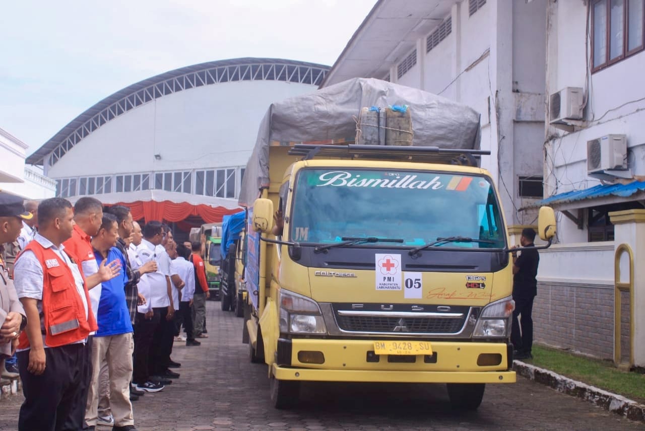 IKNews, LABUHANBATU – 10 Desember 2025 Suasana haru menyelimuti halaman Rumah Dinas Bupati Labuhanbatu Rabu siang, saat 12 truk bantuan kemanusiaan dilepas untuk warga terdampak banjir dan longsor di Kabupaten Tapanuli Selatan, Tapanuli Tengah, dan Tapanuli Utara.