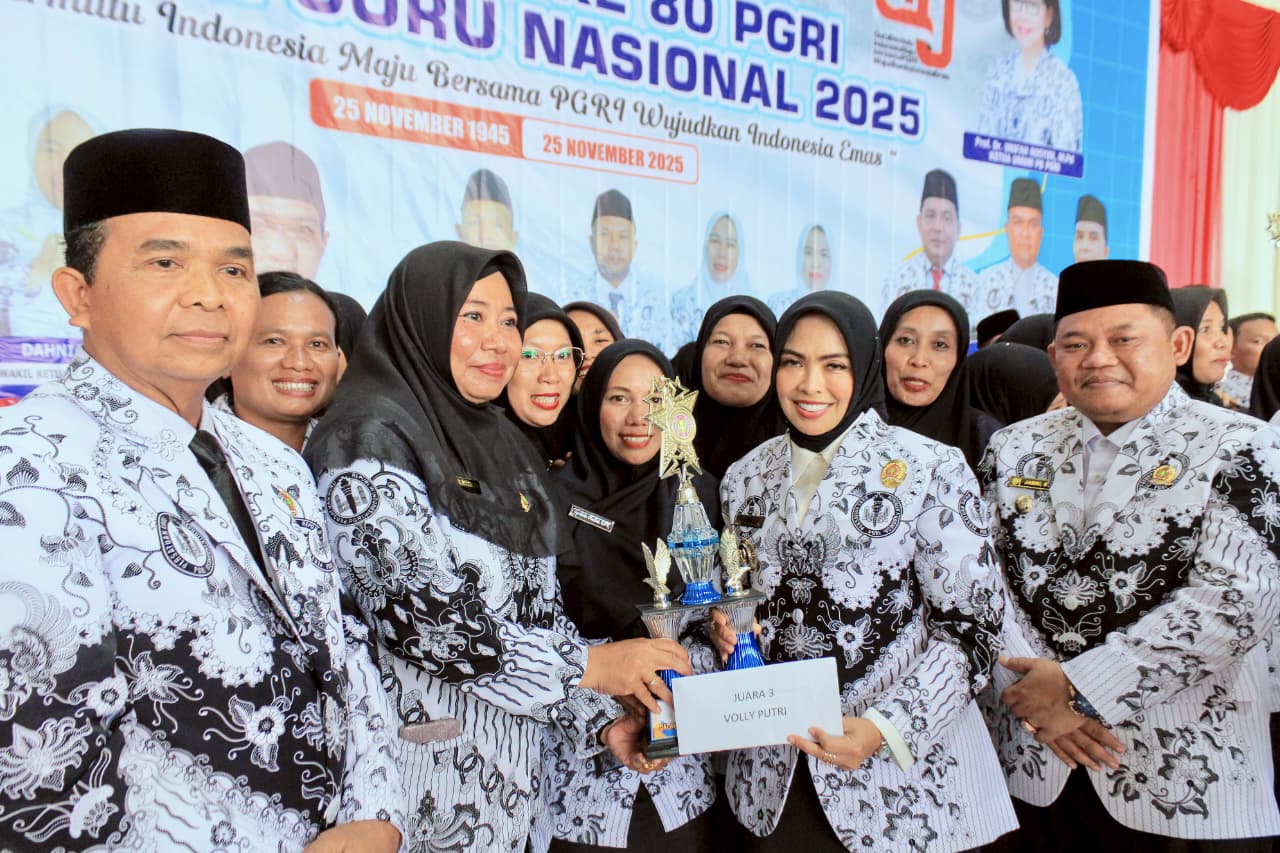 IKNews, LABUHANBATU – Suasana Gedung Serbaguna Kompleks Kantor Bupati Labuhanbatu pada Senin, 8 Desember 2025, terlihat jauh lebih ramai dari biasanya. Ratusan guru dari berbagai kecamatan memadati lokasi untuk mengikuti puncak peringatan Hari Ulang Tahun (HUT) ke-80 PGRI sekaligus Hari Guru Nasional (HGN) 2025.