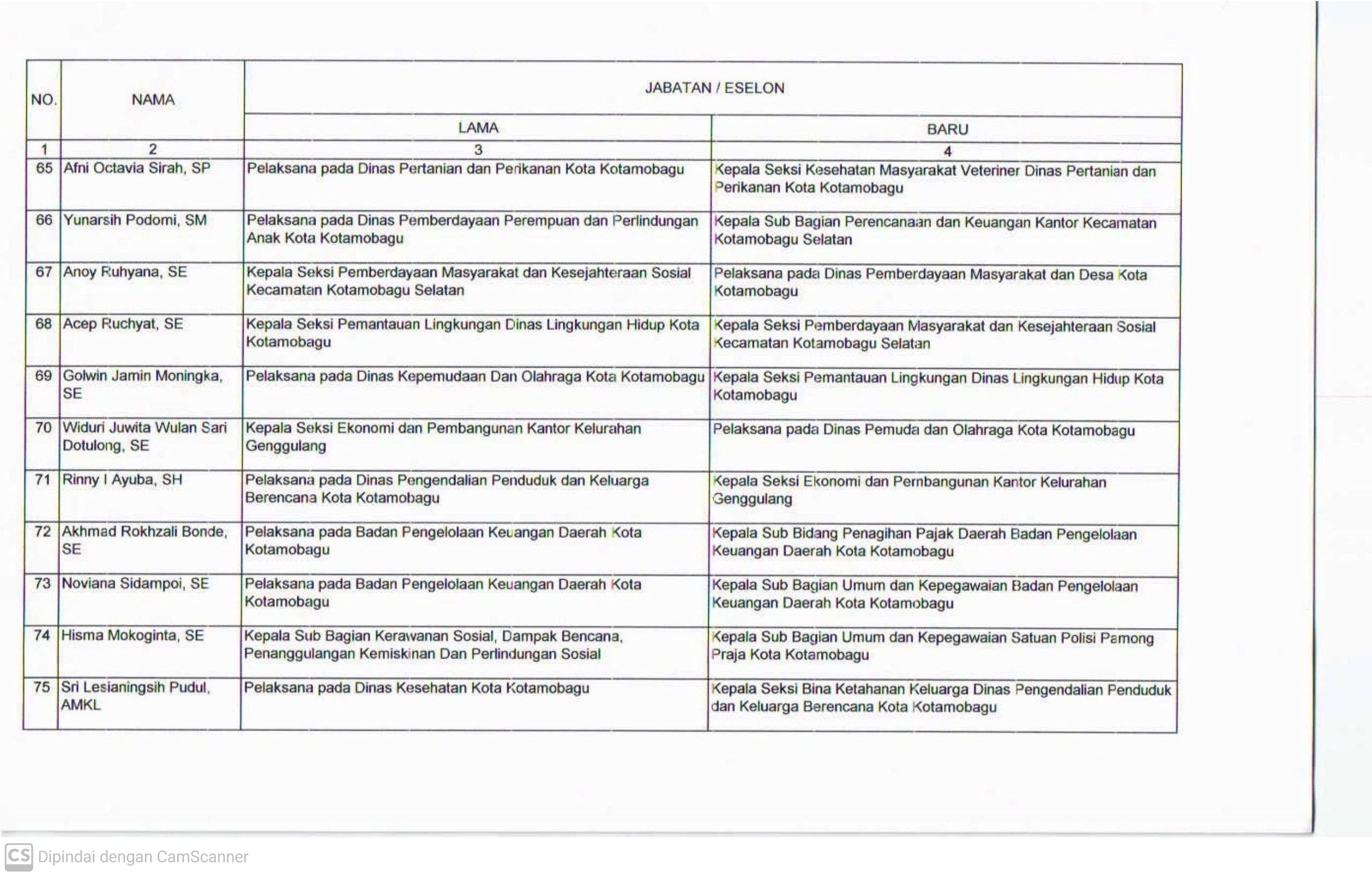 Berikut daftar nama pejabat yang dilantik;