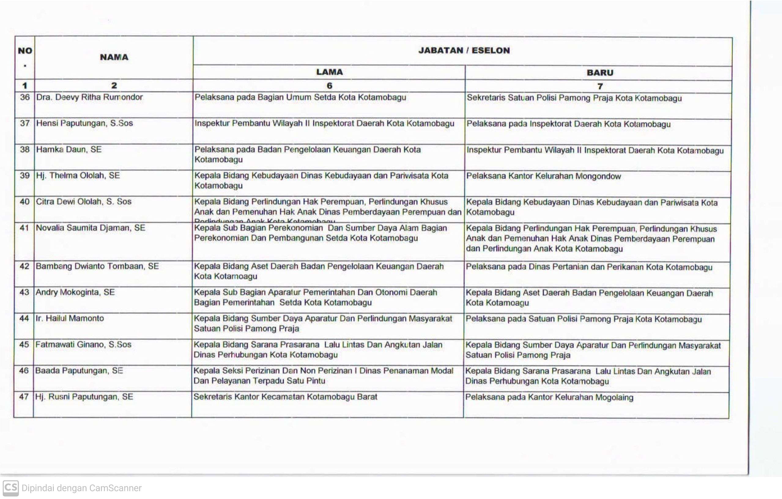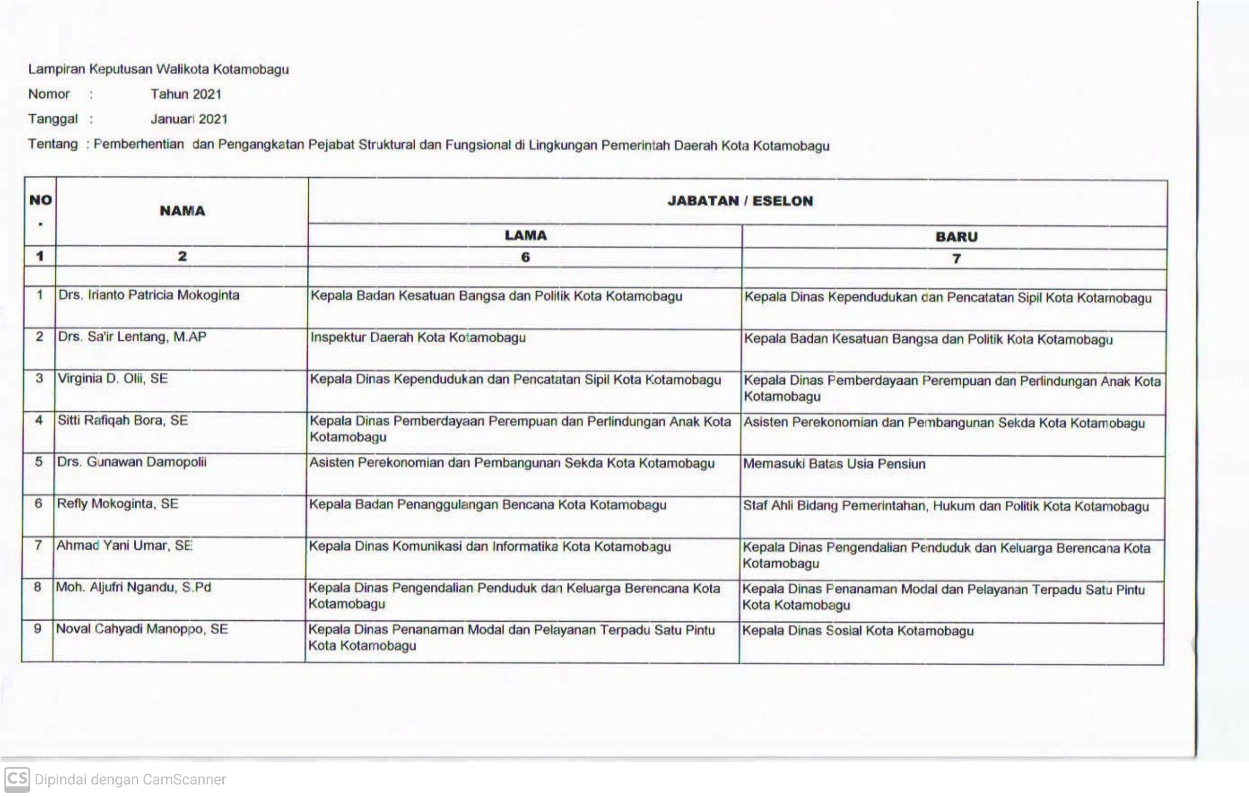 Inilah Daftar Lengkap Nama-Nama Dilantik Walikota Kotamobagu