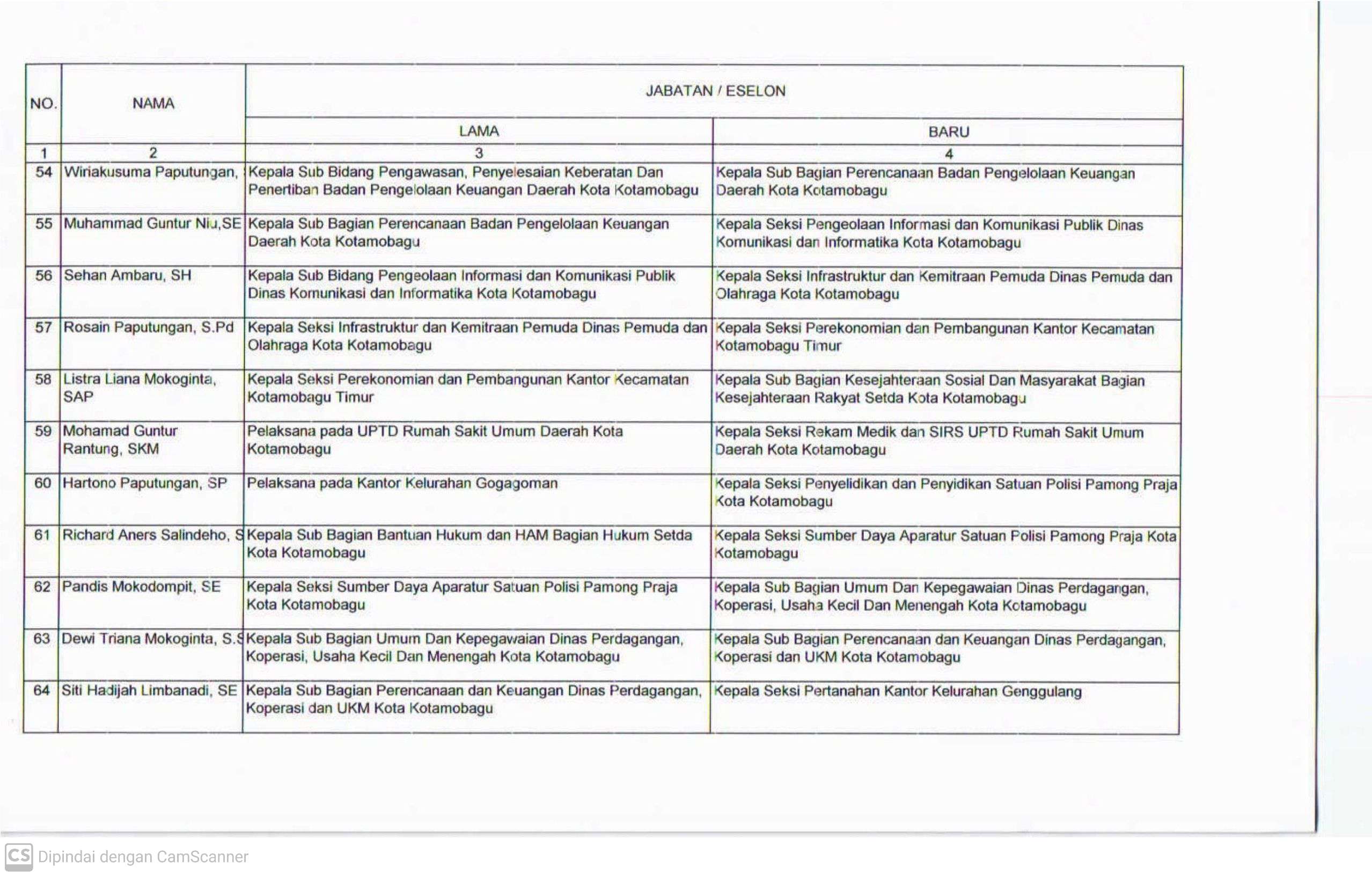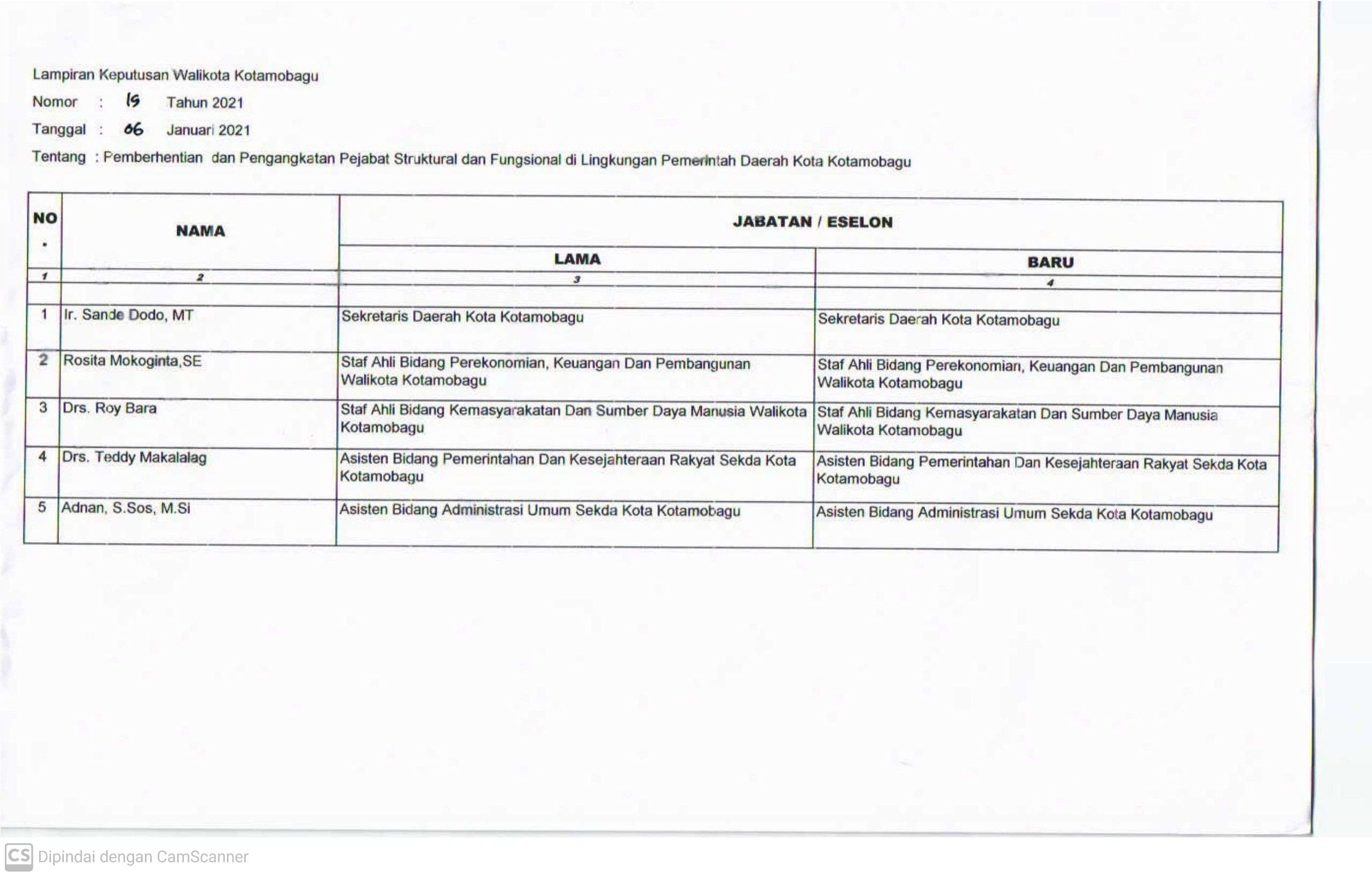 Inilah Daftar Lengkap Nama-Nama Dilantik Walikota Kotamobagu