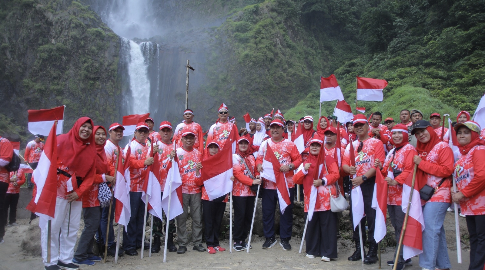 IKnews, ASAHAN – Dalam menyambut Hari Ulang Tahun (HUT) Republik Indonesia (RI) ke-78, Bupati Asahan bersama unsur Forkopimda mengibarkan 200 Bendera Merah Putih di Wisata Alam Air Terjun Ponot Kecamatan Aek Songsongan Kabupaten Asahan Sumatera Utara.