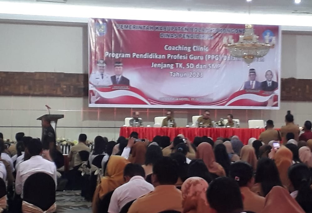 IKNews, BOLMONG — Pemerintah Kabupaten Bolaang Mongondow (Bolmong), melalui Dinas Pendidikan, melaksanakan Coaching Clinic Program Pendidikan Profesi guru (PPG), Dalam jabatan Jenjang TK, SD, dan SMP tahun 2023. Bertempat di Sutan Raja, Kotamobagu, Senin (17/07/2023).