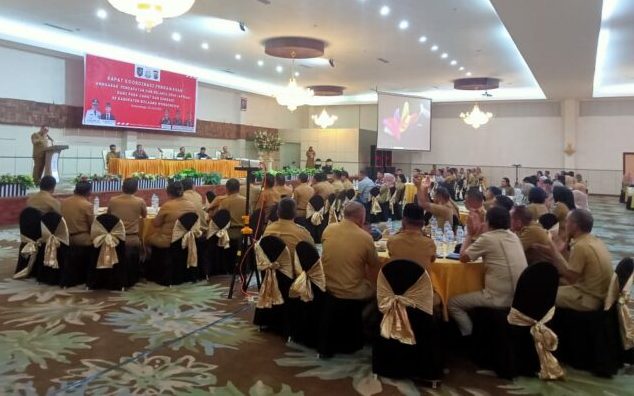 IKNews, BOLMONG — Sebanyak 200 Sangadi (Kepala Desa) besama 15 Camat, Lingkup Pemerintah Kabupaten Bolaang Mongondow (Bolmong), mengikuti Rapat Koordinasi (Rakor), terkait pengawasan Anggaran Pendapatan Belanja Desa (APBDes), digelar di Ball Room Hotel Sutan Raja, Kotamobagu, Selasa (25/7/2023).