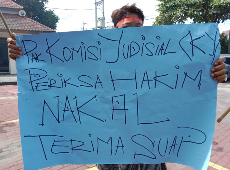 “Kami bawa pocong dan keranda kesini. Sebagai simbol telah matinya rasa keadilan yang diberikan oknum Hakim pada terdakwa dan narapidana. Dimana mereka memberi…