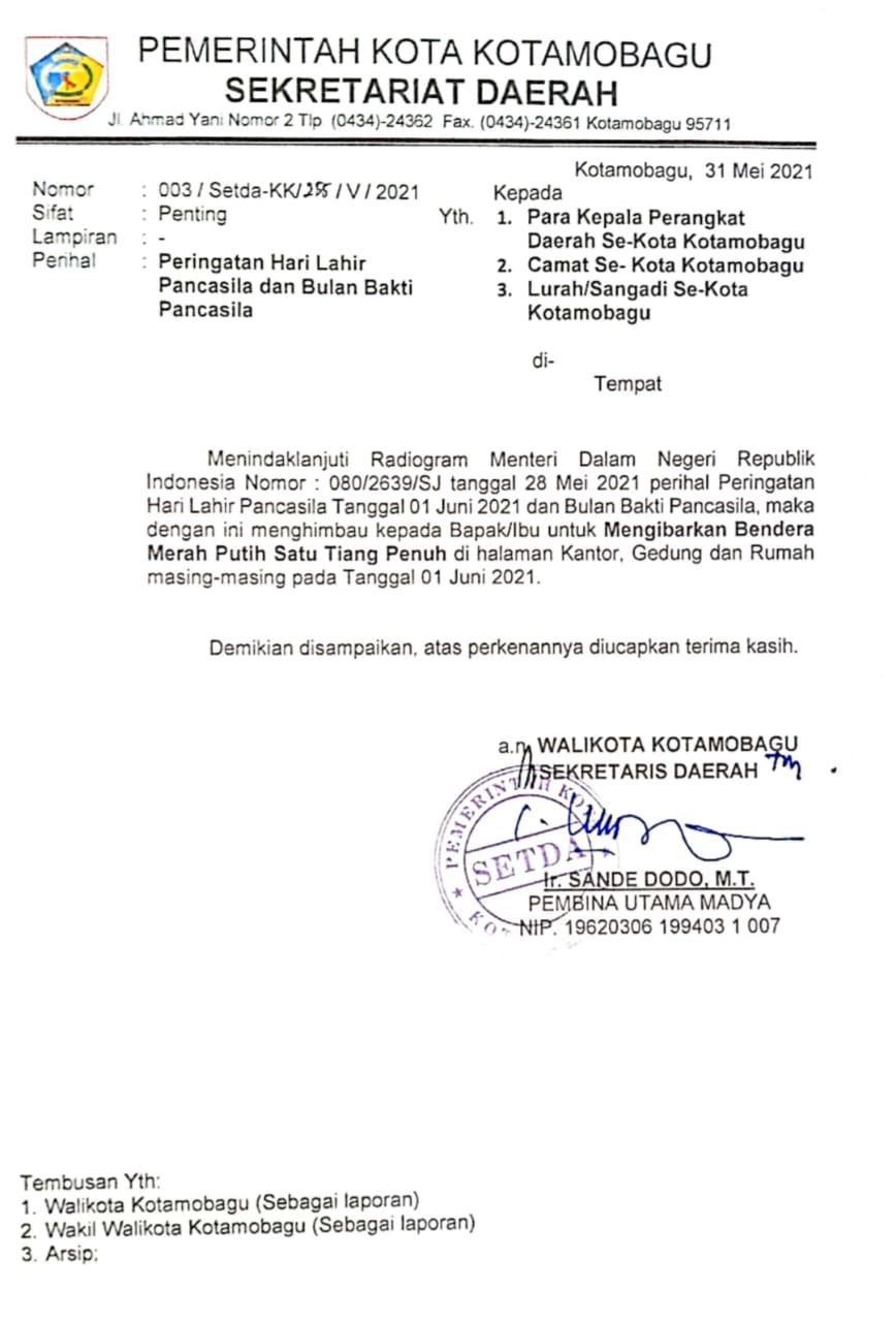 Esok Hari Lahir Pancasila, Pemkot Himbau Masyarakat Pasang Bendera Satu Tiang Penuh