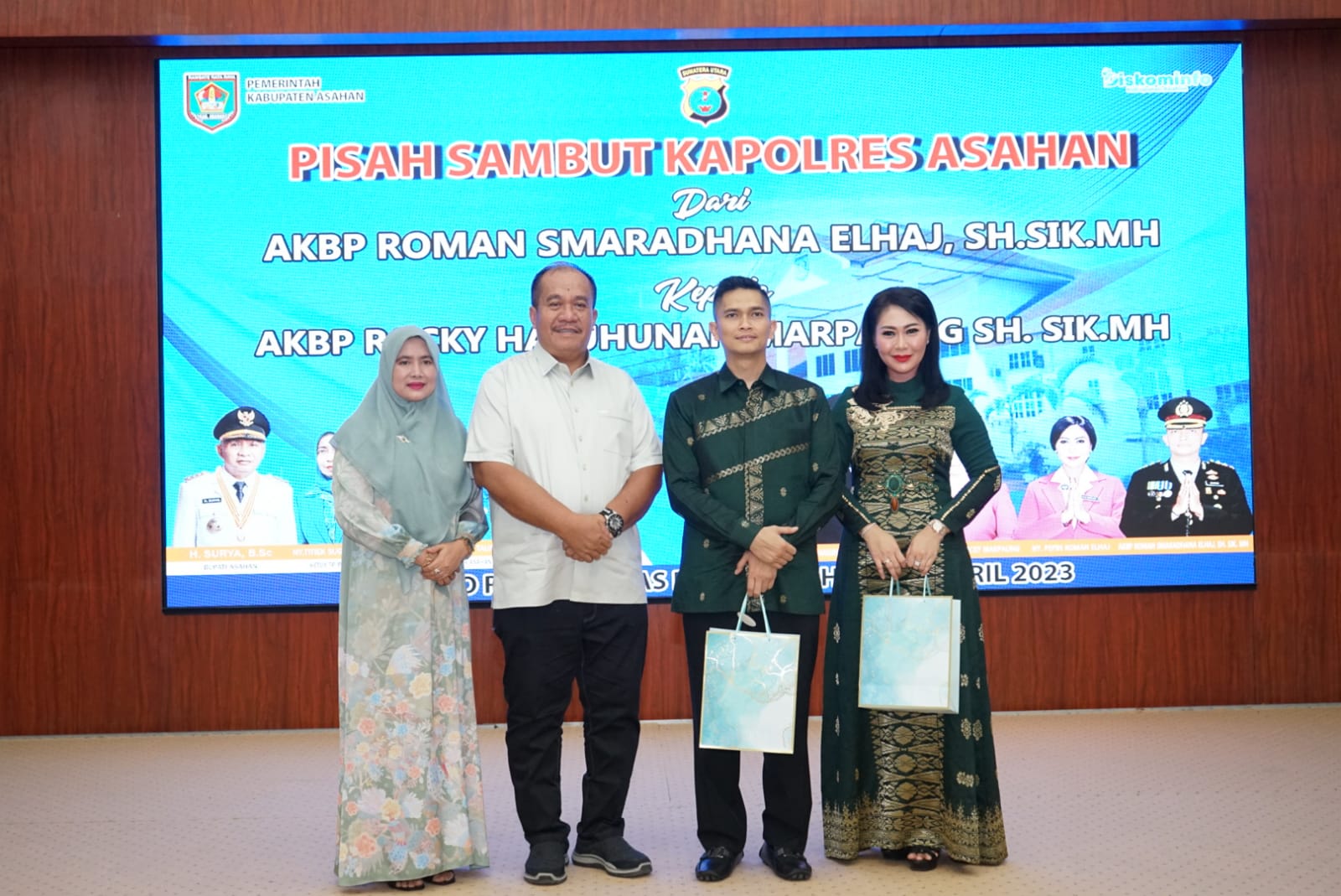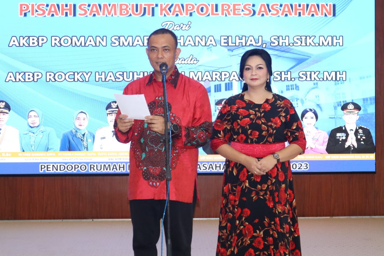 IKnews, ASAHAN – Pemerintah Kabupaten (Pemkab) Asahan menggelar acara pisah sambut Kapolres Asahan yang lama dan baru di Pendopo Rumah Dinas Bupati Asahan. Pisah sambut dari AKBP Roman Smaradhana Elhaj kepada AKBP Rocky Hasuhunan Marpaung, Minggu (16/4/2023).