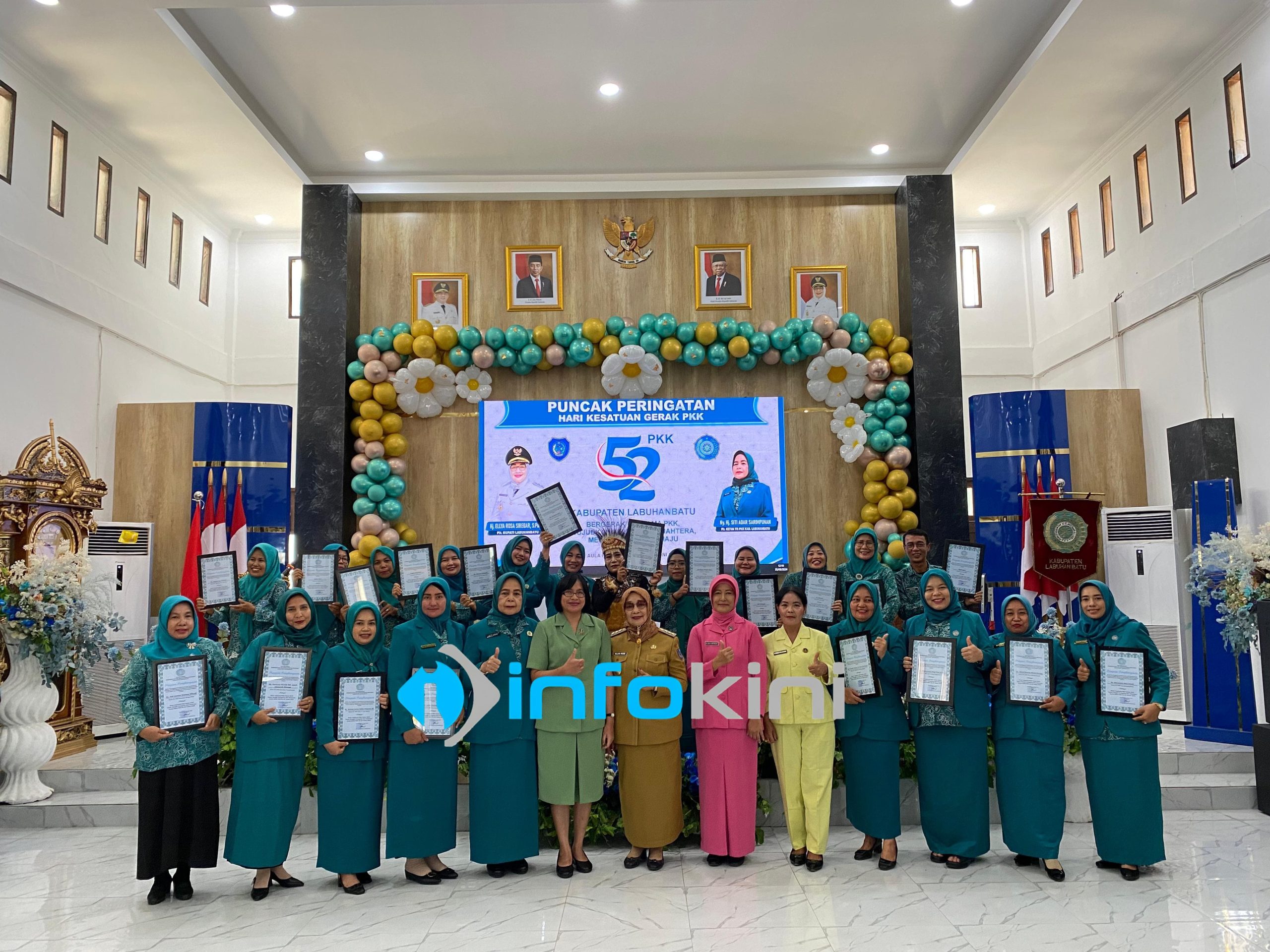 IKNews, LABUHANBATU – Pelaksana Tugas (Plt) Bupati Labuhanbatu Hj. Ellya Rosa Siregar, S.Pd, MM menghadiri Peringatan Hari Kesatuan Gerak (HKG) PKK ke-52 tingkat Kabupaten Labuhanbatu di Aula Rumah Dinas Bupati, Jalan WR Supratman, Padang Matinggi, Kecamatan Rantau Utara. Selasa (25/06).