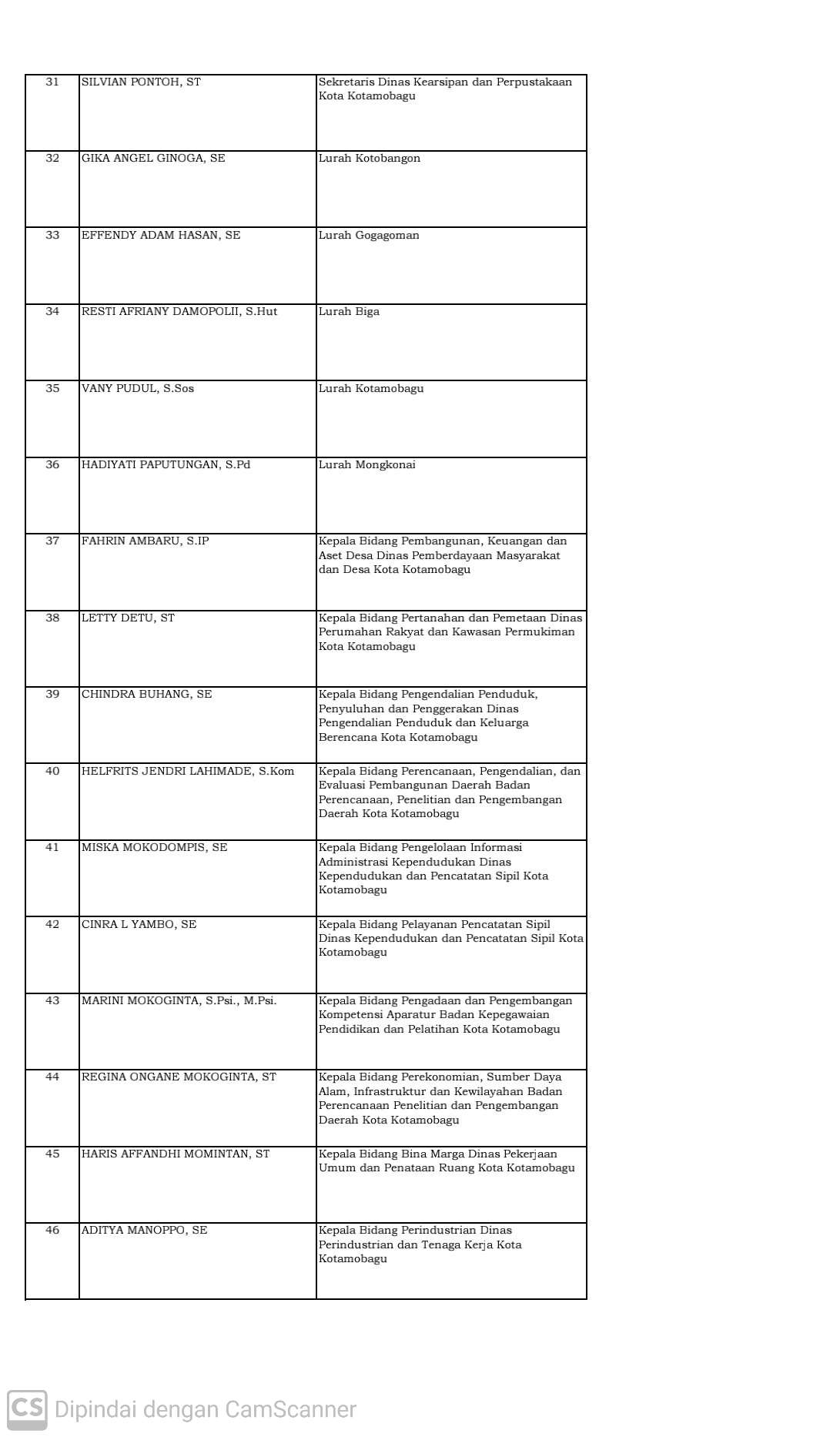 Kotamobagu – Inilah daftar lengkap Nama-Nama Pejabat Eselon 2 dan 3, yang baru dilantik Walikota Kotamobagu Tatong Bara, di aula Rumah Dinas Walikota Kotamobagu, Jumat 10 Desember 2021.