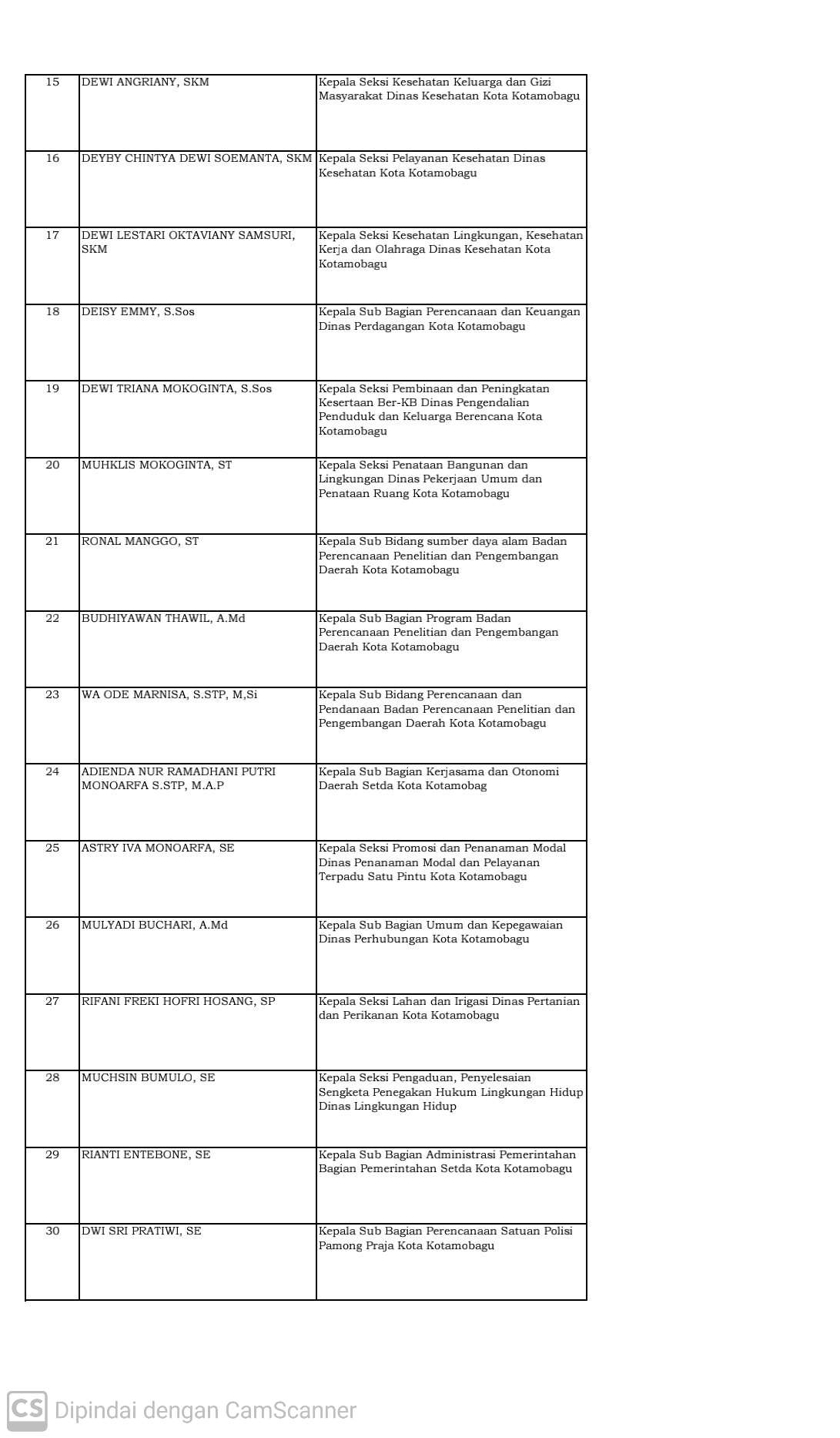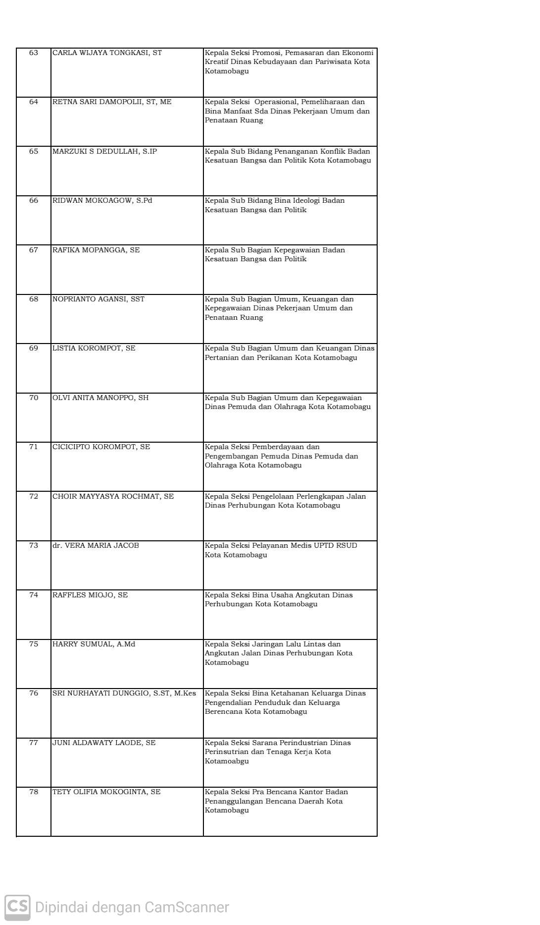 Kotamobagu – Inilah daftar lengkap Nama-Nama Pejabat Eselon 4, yang baru dilantik Walikota Kotamobagu Tatong Bara, di aula Kantor Walikota Kotamobagu, Jumat 10 Desember 2021.