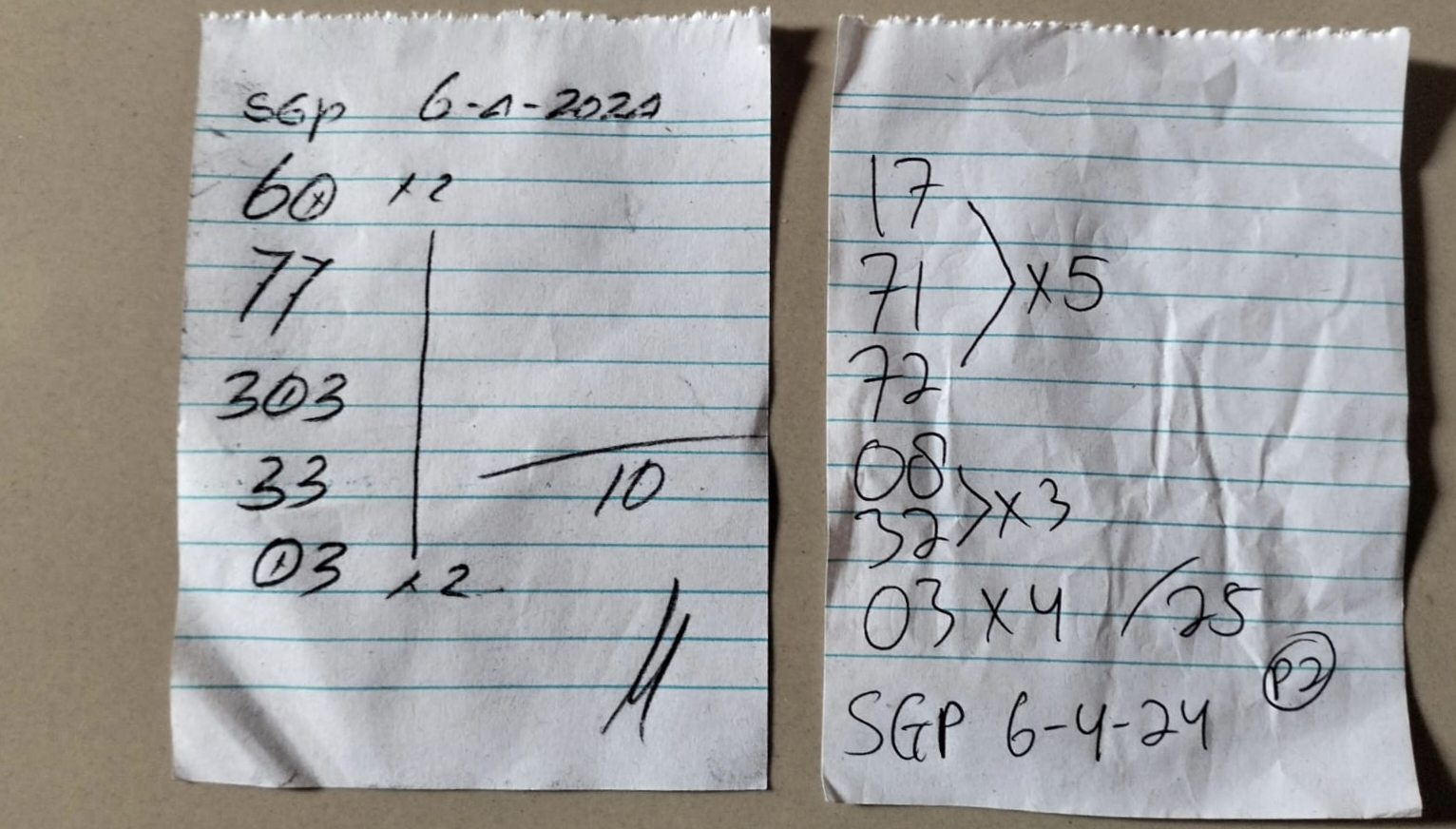 Terpisah, salah seorang warga Kisaran berinisial AG (42) memposting kertas yang sudah ditulis angka – angka alias togel.