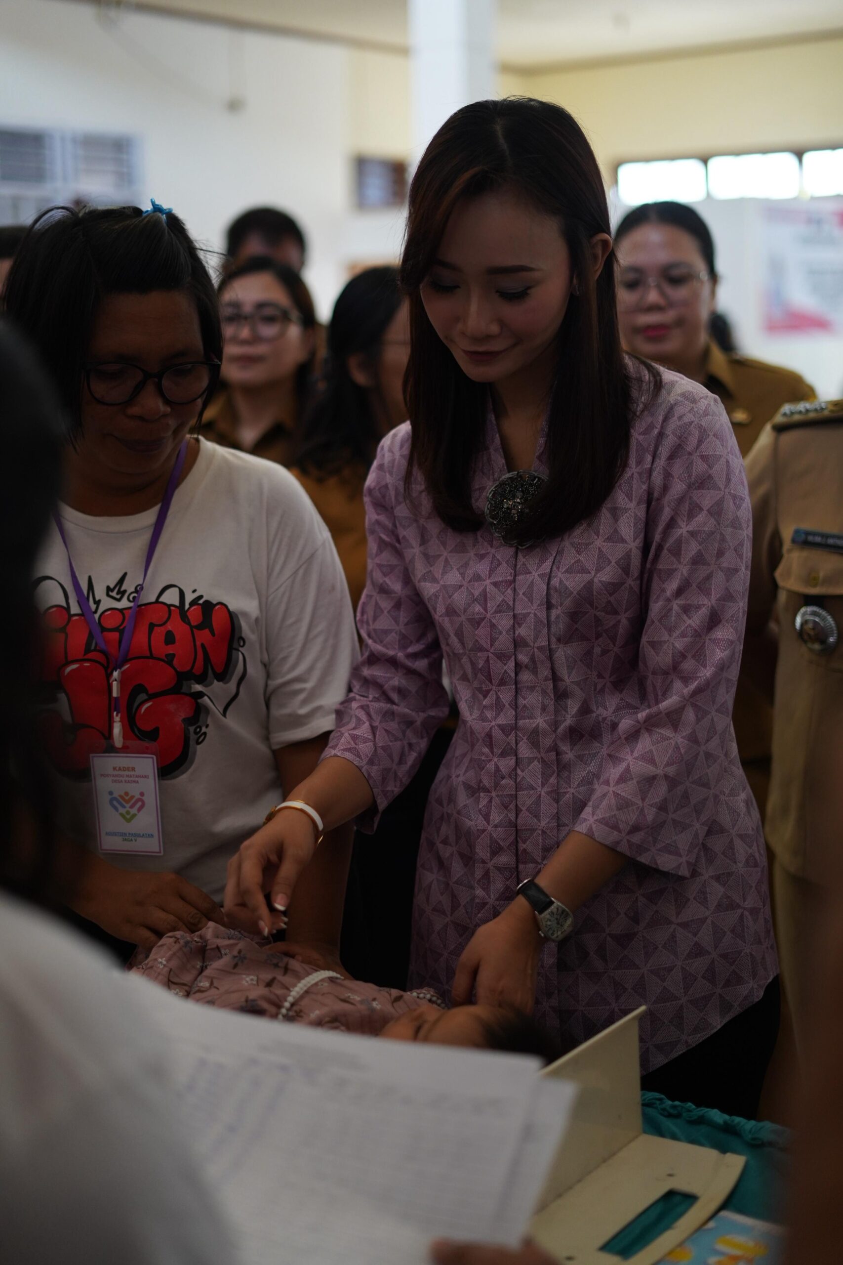 IKNews, MINUT – Ketua TP-PKK Minahasa Utara, Rizya Ganda-Davega didampingi Kepala Puskesmas Kauditan menghadiri kegiatan Posyandu di Desa Kaima Selasa (01/07/25).