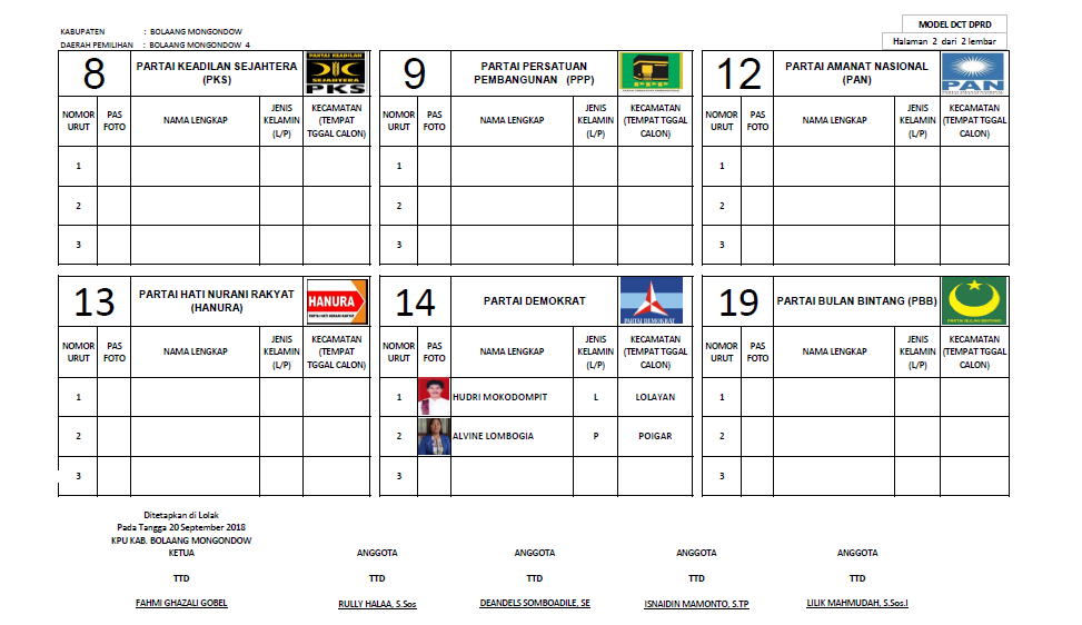 KPU Umumkan Daftar Calon Tetap (DCT) Anggota DPRD Bolmong 21 September 201821 September 2018oleh Redaksi-1014 Dilihatoleh Redaksi INFOKINI.NEWS, BOLMONG – Komisi Pemilihan Umum Daerah Kabupaten Bolaang Mongondow umumkan Daftar Calon Tetap (DCT) Pileg 2019. Ini daftarnya: Tim InfoKini News Post Views: 1,014 Jangan LewatkanASTAGA! Oknum Guru Cabul di Kepahiang Lolos PPPKProyek Puskesmas Buntu Limbong Tersendat, Tukang Andalkan Air HujanKomisi III DPR RI Buka Fakta Gelap Kasus Dana Syariah IndonesiaEkonomi Kotamobagu Tumbuh 6,02 PersenAnggaran Perjalanan Dinas Lebong Disorot BPK