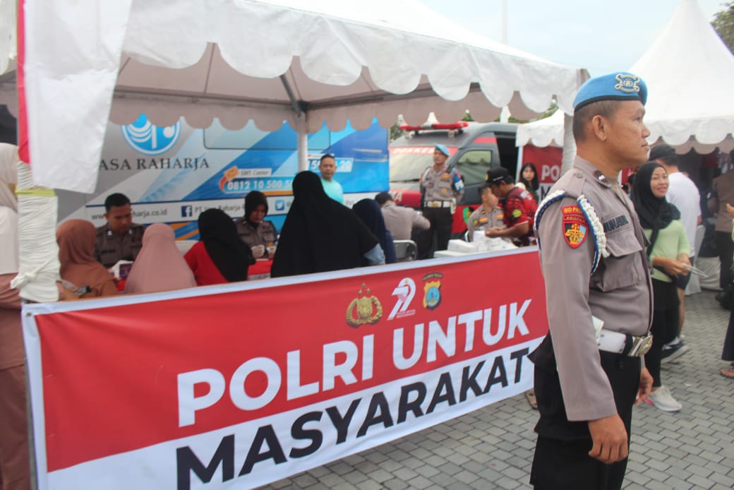 Selain layanan tersebut, masyarakat juga mendapatkan makanan gratis dan edukasi keselamatan berlalu lintas.