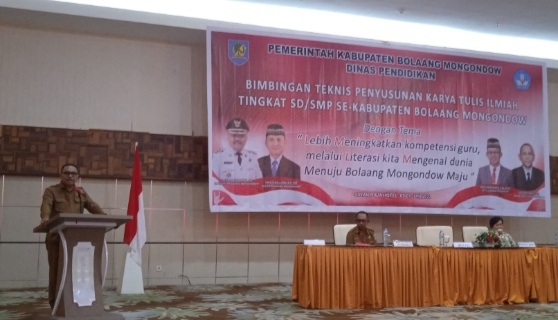 Diketahui Bimtek tersebut dilaksanakan di ball room Hotel Sutanraja Kotamobagu,selama tiga hari, dengan mengangkat tema “Lebih meningkatkan kompetensi guru, melalui literasi kita mengenal dunia menuju Bolaang Mongondow Maju”.