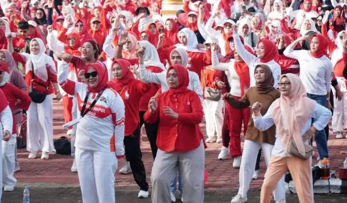 Tak sekadar olahraga, kegiatan ini berubah menjadi ajang silaturahmi penuh semangat dan tawa. Diiringi musik ceria dan sorak-sorai peserta, semangat kemerdekaan benar-benar terasa mengalir di setiap langkah dan gerakan senam yang dilakukan bersama-sama.