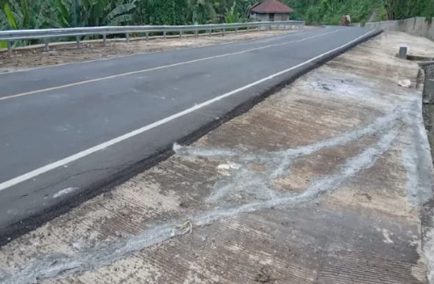 Yang rusak dan terlihat retak itu hanya bangunan pengapit pinggir aspal badan jalannya saja.
