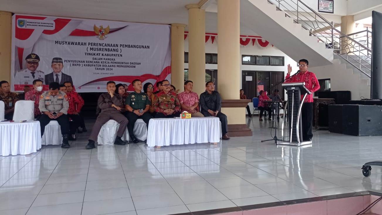 IKNews, BOLMONG — Pemerintah Kabupaten (Pemkab) Bolaang Mongondow (Bolmong), secara resmi gelar Musyawarah Perencanaan Pembangunan (Musrenbang) tingkat Kabupaten bersama seluruh perangkat daerah dalam rangka penyusunan Rencana Kerja Perangkat Daerah (RKPD) tahun 2024.