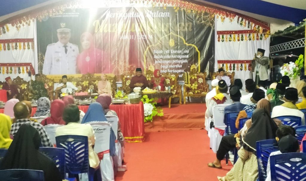 IKNews, BOLMONG — Pemerintah Kabupaten Bolaang Mongondow (Bolmong), Provinsi Sulawesi Utara (Sulut), memasuki malam ke 16 bulan Ramadhan, menggelar peringatan Nuzulul Qur’an Ramadan 1444 Hijriah, bertempat di masjid Al-Ikhlas, Desa Bumbung, Kecamatan Lolak, Jumat (07/04/2023) malam.