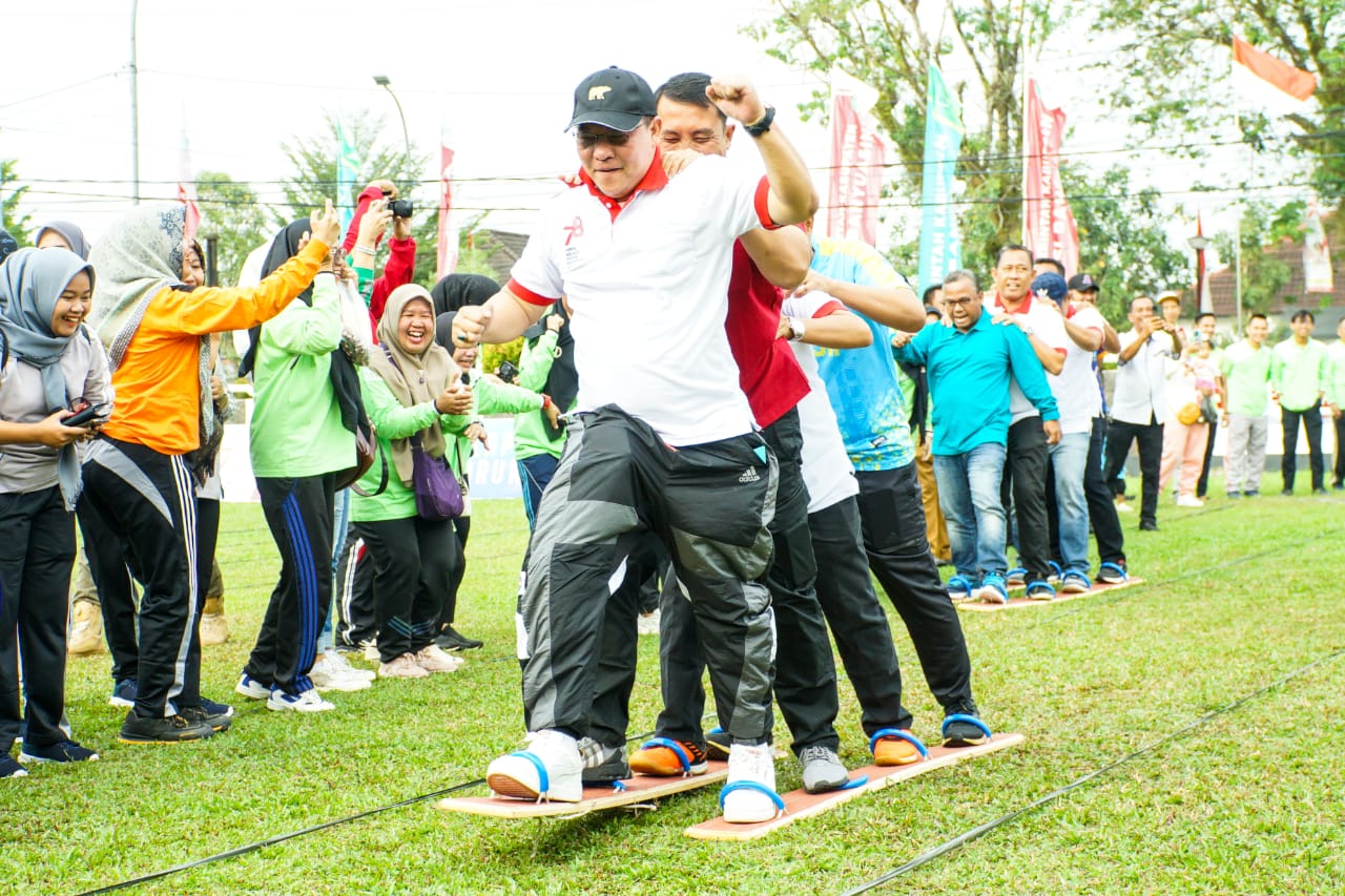 Sementara itu, dalam laporannya Kepala Dinas Pemuda dan Olahraga Kabupaten Muba Muhammad Faris SSTP MSi menyampaikan, terdapat 4 jenis permainan tradisional yang hari ini di perlombaan diantaranya, tarik tambang, balap karung, terompa, dan enggrang.