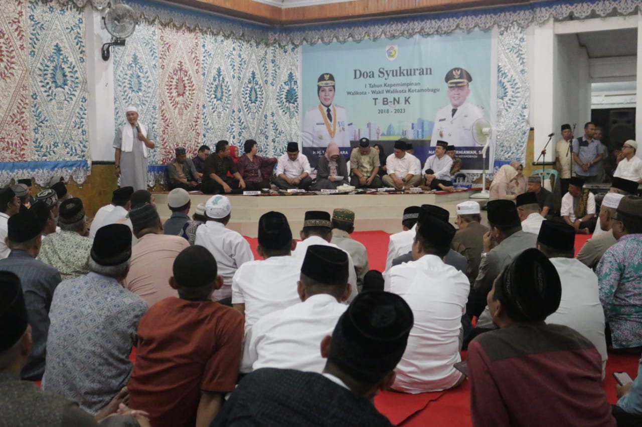 INFOKINI.NEWS,  KOTAMOBAGU – Wali Kota Kotamobagu Tatong Bara dan Wakil Wali Kota Nayodo Koerniawan (TB-NK) mengadakan syukuran satu tahun  kepemimpinan dengan dizikir dan doa bersama, di Aula Rudis Wali Kota, Kamis (3/10/2019) kemarin.