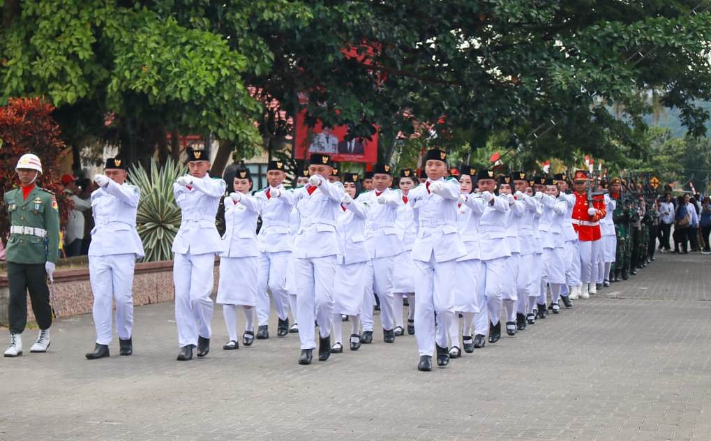 Pj Bupati Limi Mokodompit Menjadi Irup pelaksanaan upacara HUT RI ke 78 di Kabupaten Bolmong.