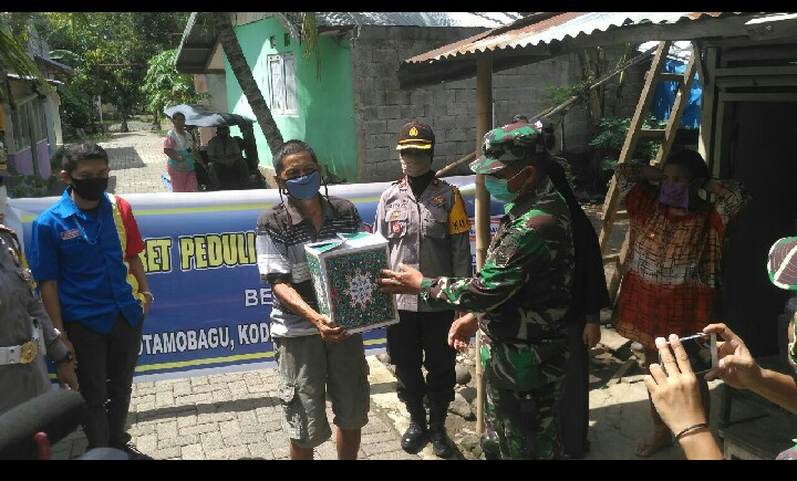 Hukrim – Untuk membantu warga kurang Mampu di wilayahnya. Polres Kotamobagu bersama dengan Kodim 1303, dan PT Indomaret membagikan puluhan bantuan Sembako demi meringankan beban kebutuhan hidup di tengah pandemi Viruscorona atau Covid-19, Sabtu (02/05/2020).