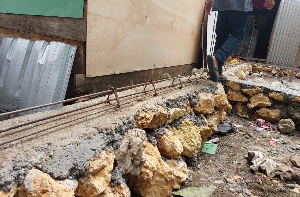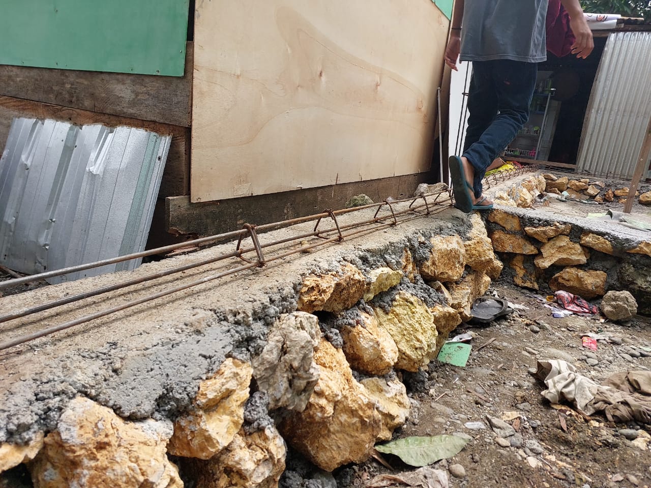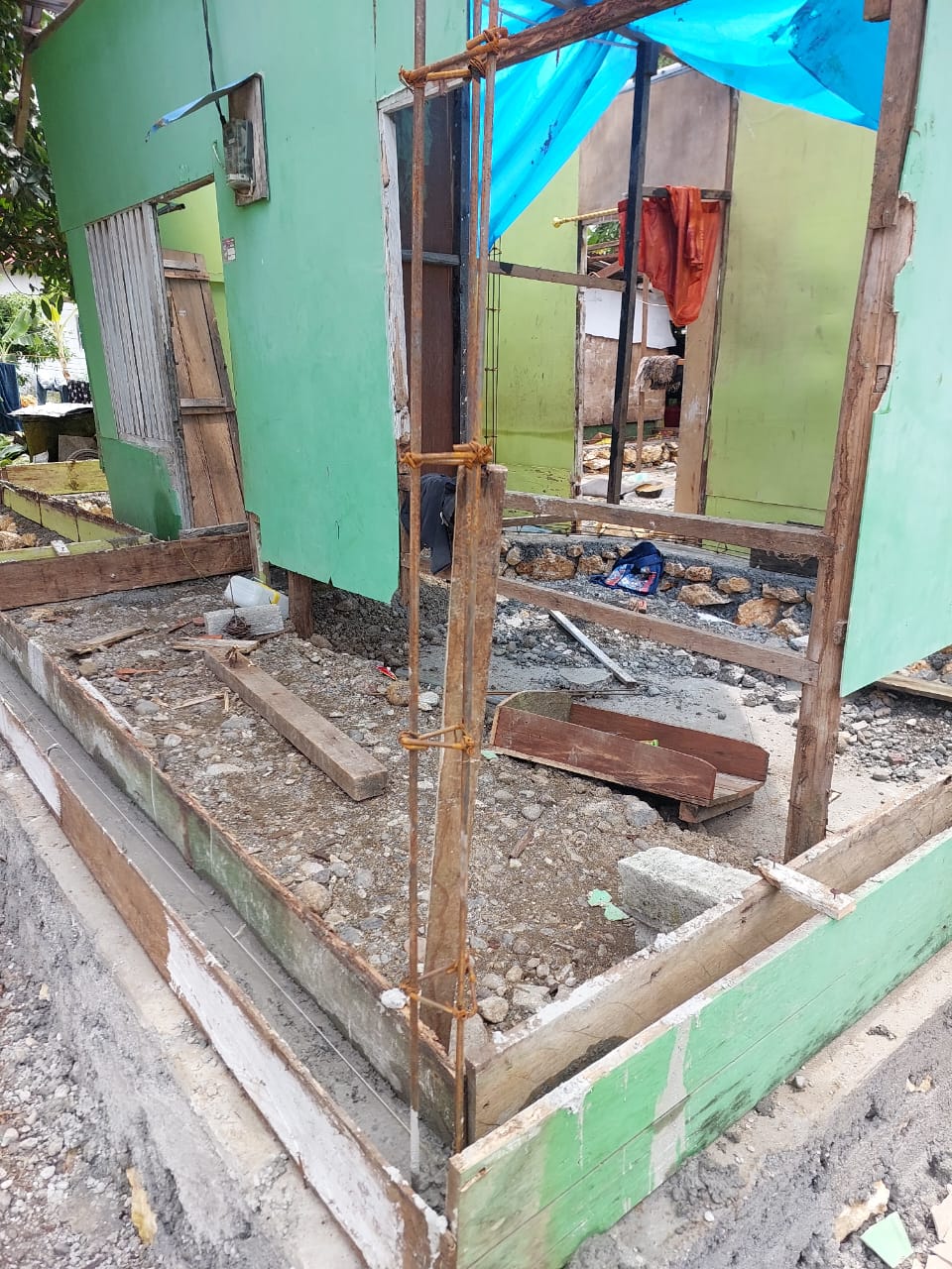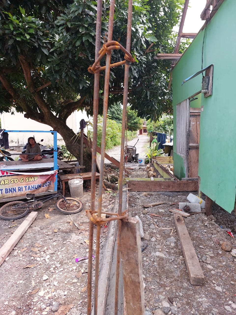 Kuat dugaan material bahan bangunan berupa pembesian sloof dan tiang kolom dibuat tidak berdasarkan juknis yang berlaku dalam program.