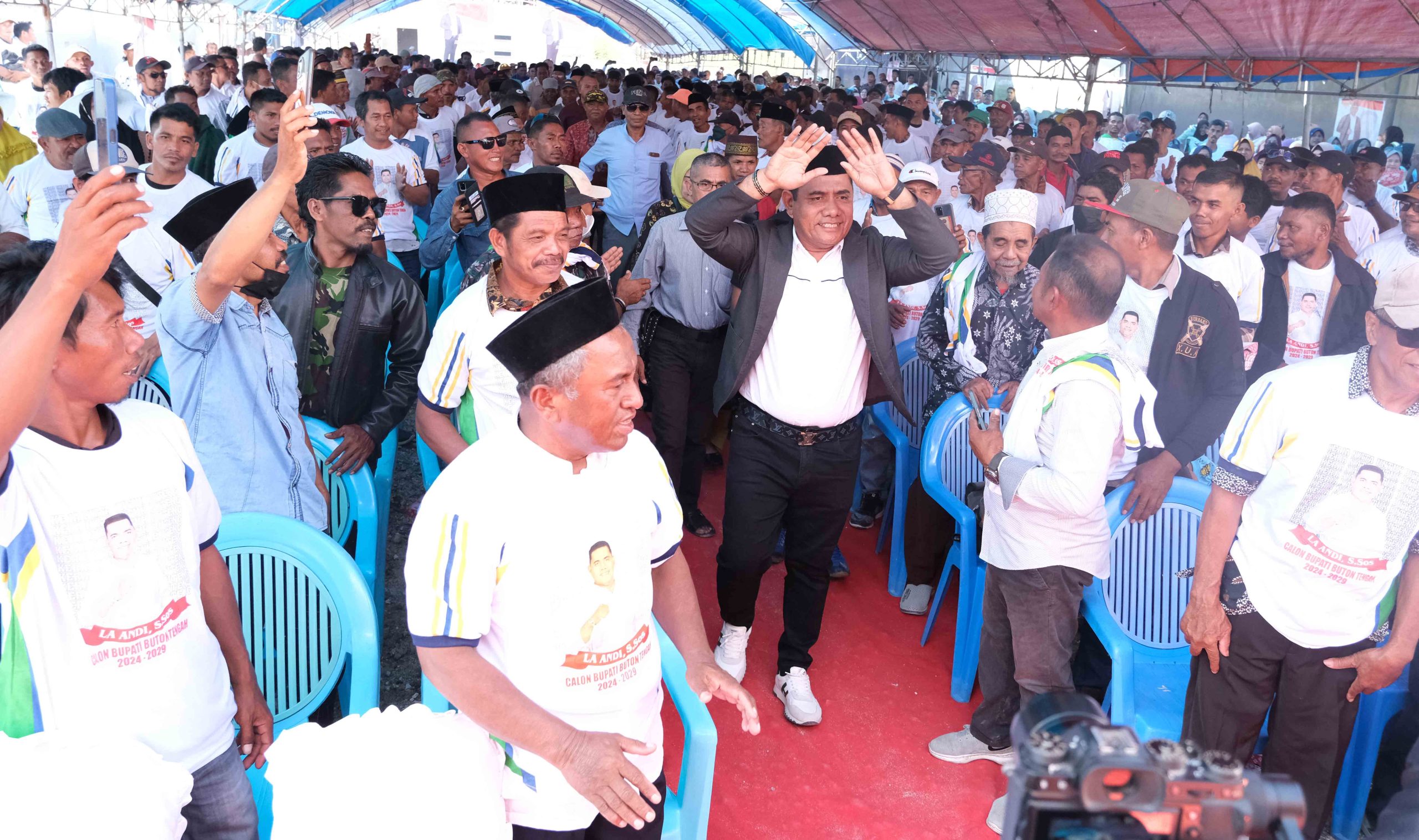 IKNEWS, BUTON TENGAH – Ribuan warga Kabupaten Buton Tengah (Buteng) yang berasal dari tujuh kecamatan yakni Kecamatan Mawasangka, Mawasangka tengah, Mawasangka timur, Gu, Lakudo, Sangia Wambulu dan Talaga Raya, berbondong-bondong menghadiri undangan silaturahmi akbar Bakal Calon (Balon) Bupati Buton Tengah, La Andi, S.Sos, Minggu (1/10/3023).