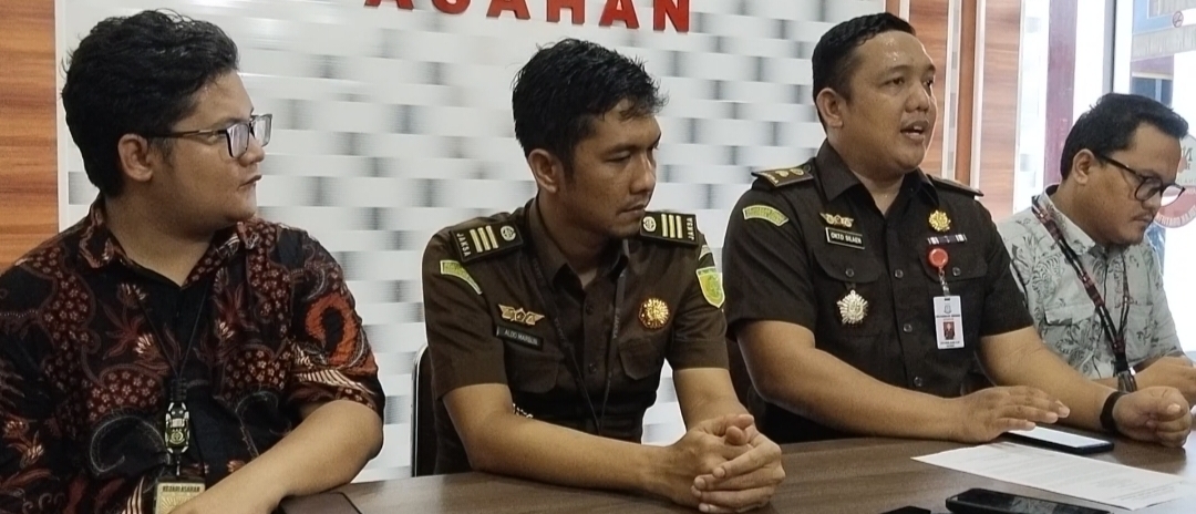 Kasi Pidsus Okto Samuel Silaen didampingi Kasi Intel Aguinaldo Marbun, Raimond Saftahari dan Harold Manurung. (Jaksa yang menggelar Konferensi Pers).