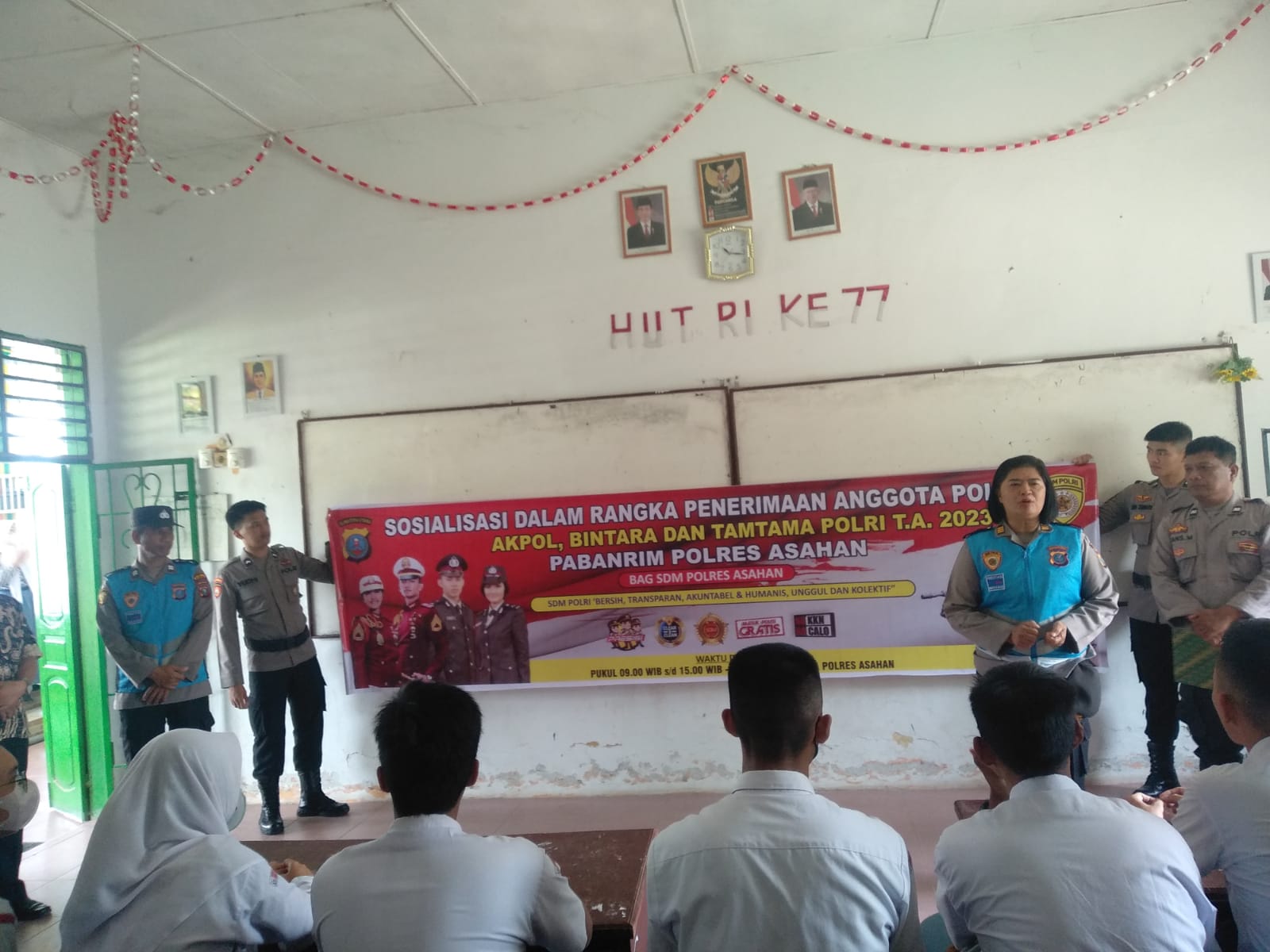 IKnews, ASAHAN – SDM Polres Asahan melakukan Sosialisasi seleksi penerimaan terpadu calon taruna Akpol, Bintara dan Tamtama Polri 2023 di Sekolah Menengah Atas (SMA), Jumat (31/3/2023).