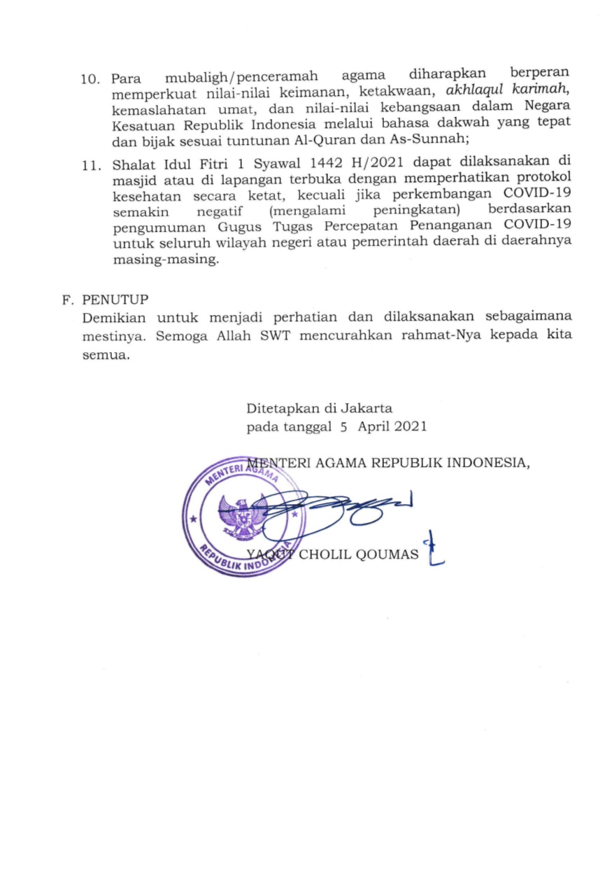 Surat edaran yang ditandatangani oleh Menag, Yaqut Cholil Qoumas tersebut, menegaskan akan penerapkan protokol kesehatan pencegahan penyebaran COVID-19.