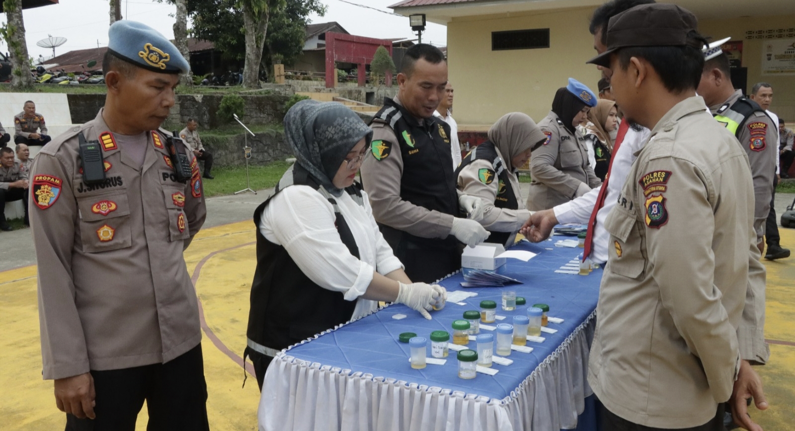 Kapolres Asahan, AKBP H Marpaung mengatakan, tes urine serentak dilakukan kepada PJU dan anggota Polres Asahan termasuk seluruh polwan.
