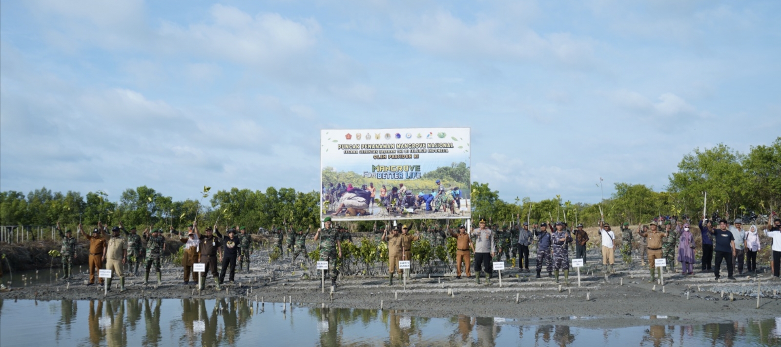 Diawali dengan penanaman Mangrove oleh Presiden RI secara virtual, kegiatan tersebut diikuti penanaman secara serentak di seluruh Indonesia, termasuk di Kabupaten Asahan.