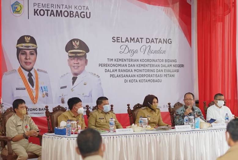 “Saya atas nama pribadi jajaran Pemerintah Daerah Kota Kotamobagu dan atas nama seluruh masyarakat Kotamobagu,mengucapkan selamat datang di Kotamobagu kepeda Ketua Tim dan seluruh anggota monitoring dan evaluasi pelaksaan korporatisasi petani dan nelayan dalam bahasa adat daerah kami “dega’ niondon komintan” artinya selamat datang,” kata Wali Kota Kotamobagu,Tatong Bara, dalam sambutan pada kegiatan tersebut yang digelar di rumah dinas wali kota, Selasa (9/11/2021).