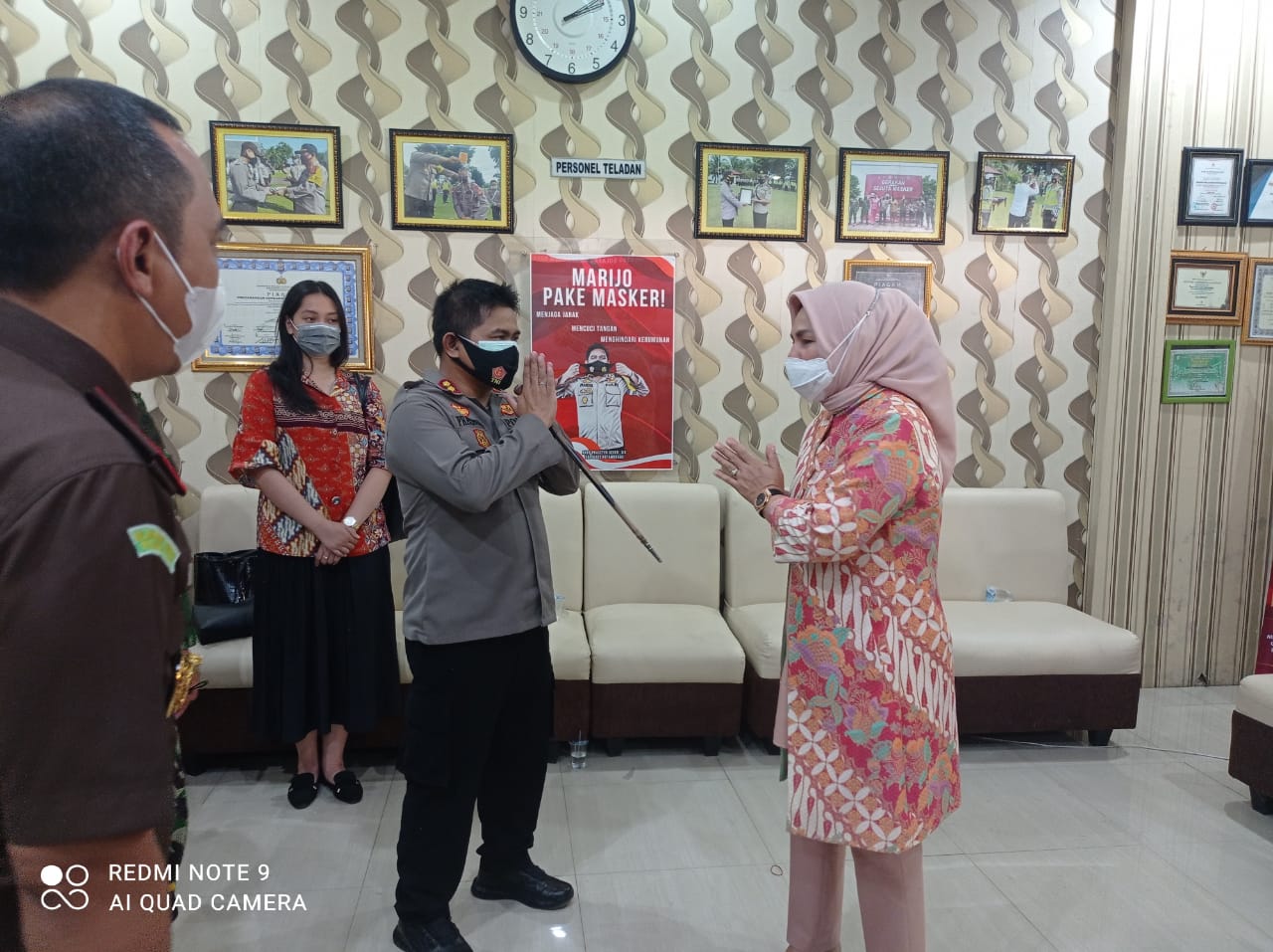 KOTAMOBAGU – Wali Kota Kotamobagu Ir Hj Tatong Bara bersama jajaran Forum Komunikasi Pimpinan Daerah (Forkopimda), yakni Ketua DPRD Kotamobagu Meiddy Makalalag ST, Dandim 1303 Bolmong Letkol Inf Raja Gunung Nasution, dan Kepala Kejari Kotamobagu Hadiyanto SH, menyambangi Mapolres Kotamobagu, Kamis (01/07/2021) pagi tadi, usai upacara peringatan HUT Bhayangkara ke 75.