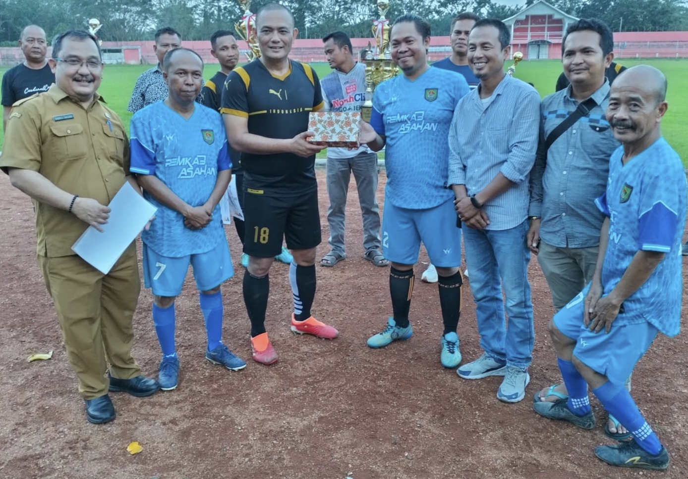 IKnews, ASAHAN – Tim sepak bola Wartawan Asahan Football dan Futsal (WAFF) memeberi cendramata kepada Kapolres Asahan, AKBP Rocky H Marpaung.