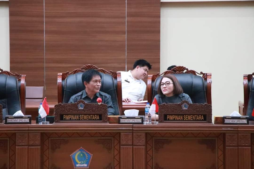Rapat Paripurna tersebut dipimpin Ketua DPRD Sementara, dr. Fransiscus Andi Silangen,SpB,KBD didampingi Wakil Ketua Sementara dr.Michaela Elsiana Paruntu,MARS.