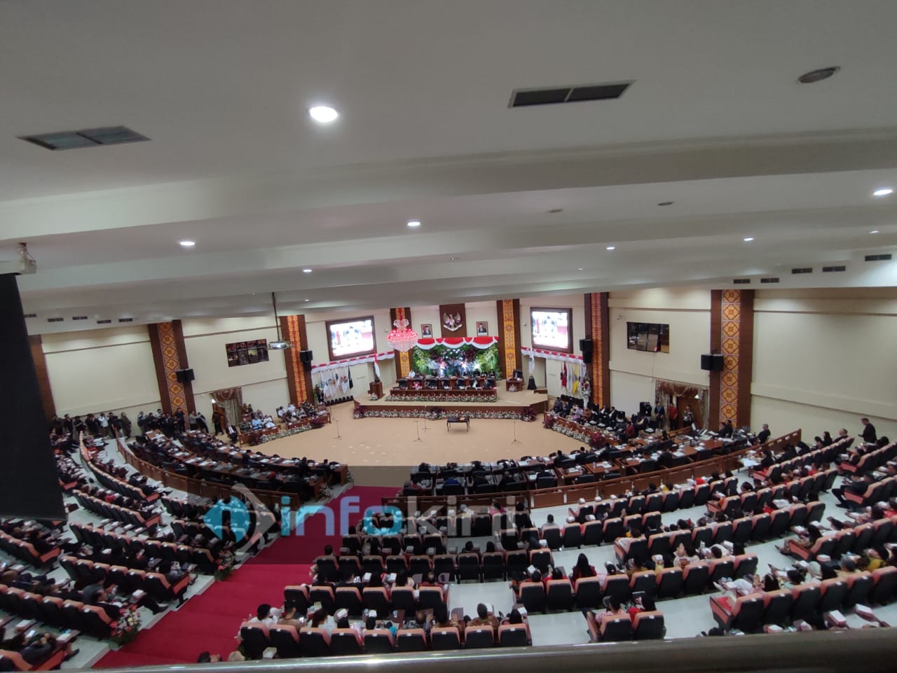 IKNews-SULUT – Dewan Perwakilan Rakyat Daerah (DPRD) Provinsi Sulawesi Utara (Sulut) menggelar Rapat Paripurna dalam rangka Pemberhentian Anggota DPRD Provinsi Sulut Masa Jabatan 2019-2024 dan Pengucapan Sumpah/Janji Anggota DPRD Provinsi Suluit Masa Jabatan 2024-2029 bertempat di Ruang Rapat Paripurna DPRD Sulut, Senin (9/9) siang.