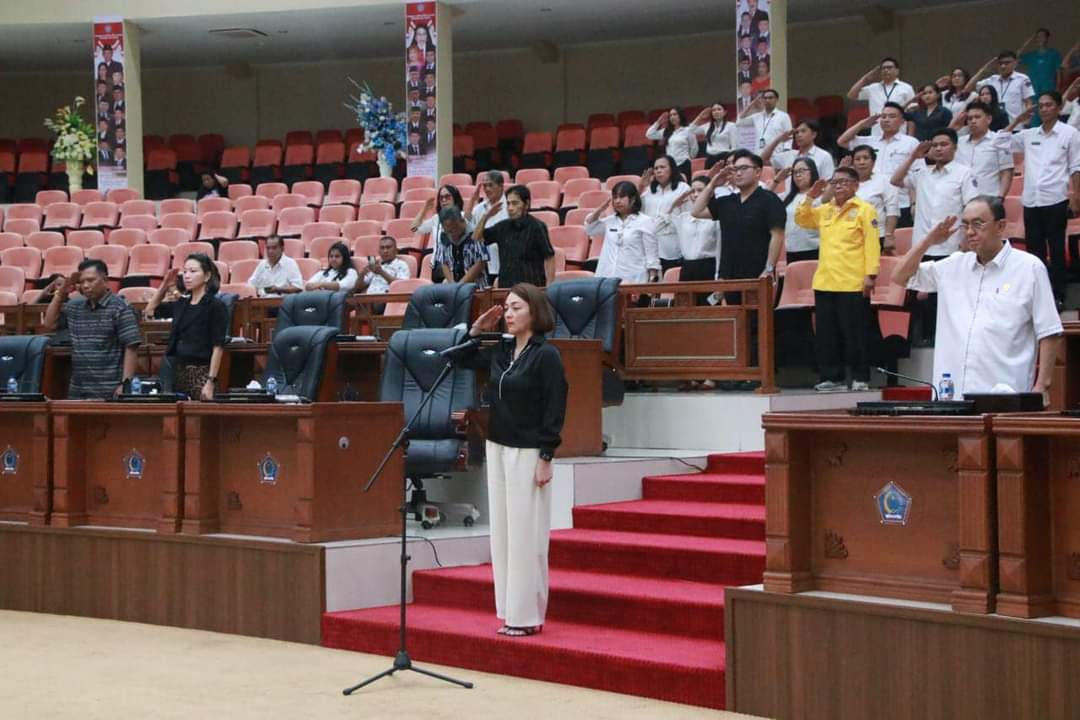 Upacara persemayaman jenazah Almarhum Vanny Kaparang dipimpin Michaela Elsiana Paruntu selaku Pimpinan DPRD Sementara.